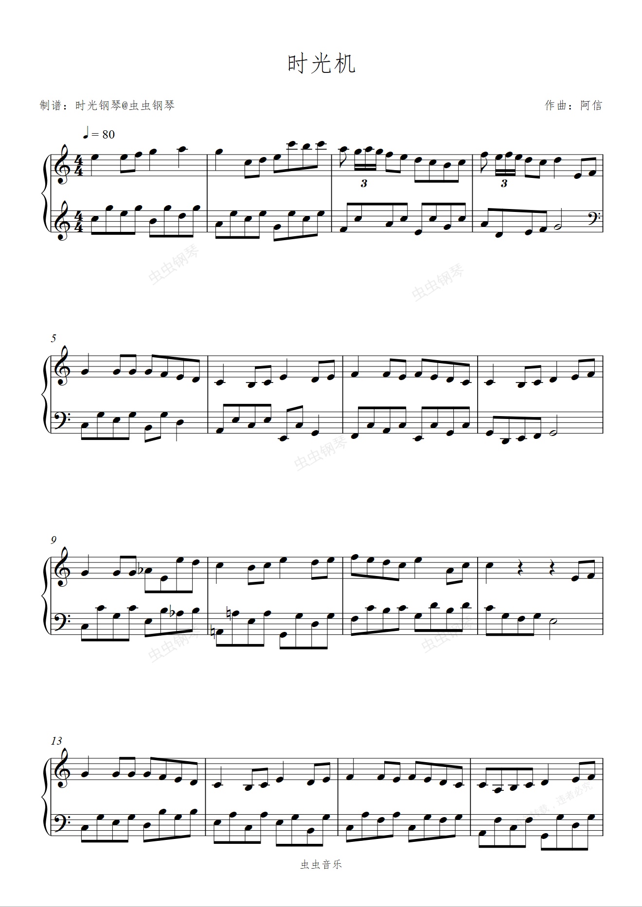 钢琴谱:时光机  C调简易  五月天 (Mayday)