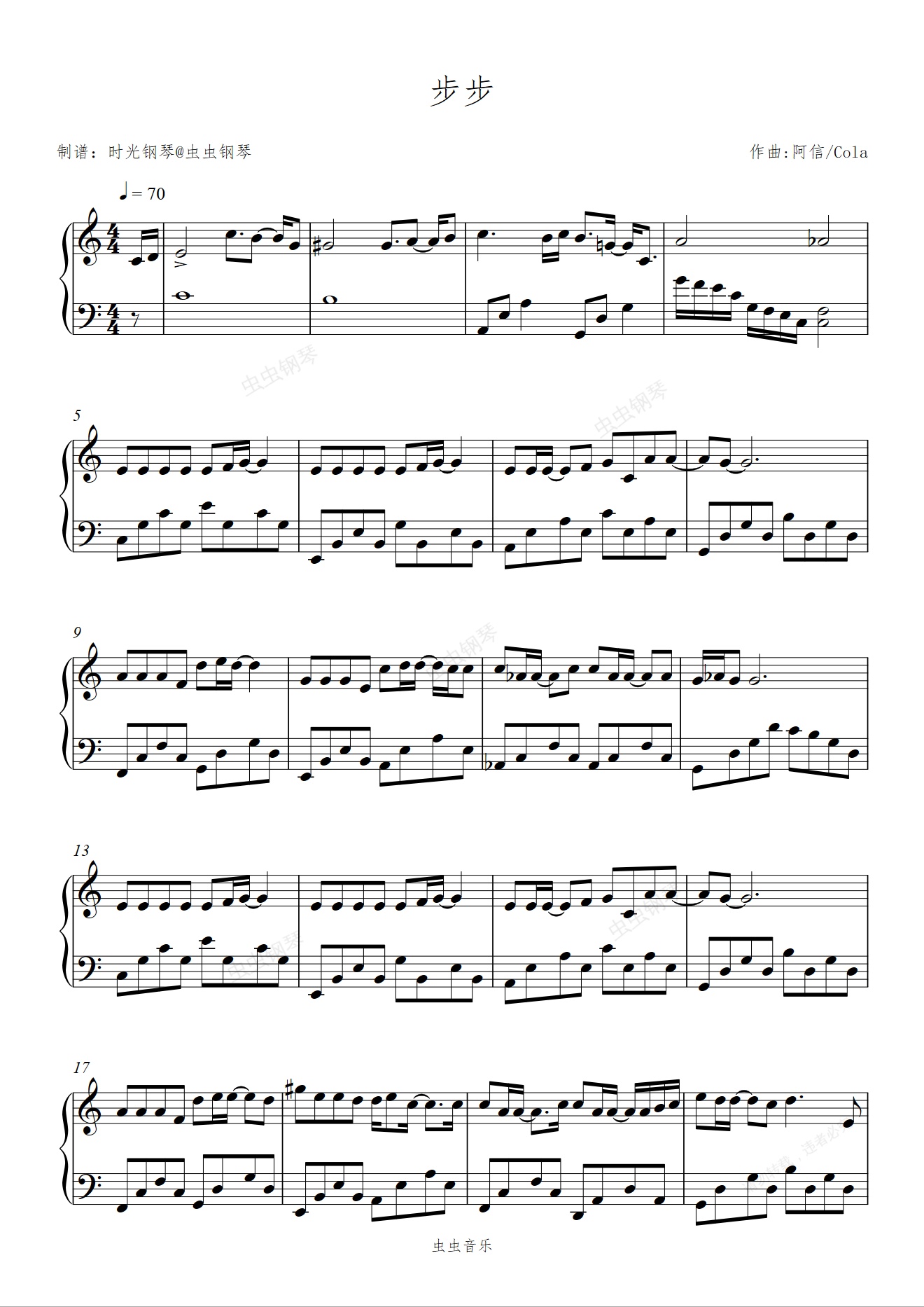 钢琴谱:步步 C调简易 五月天 (Mayday)