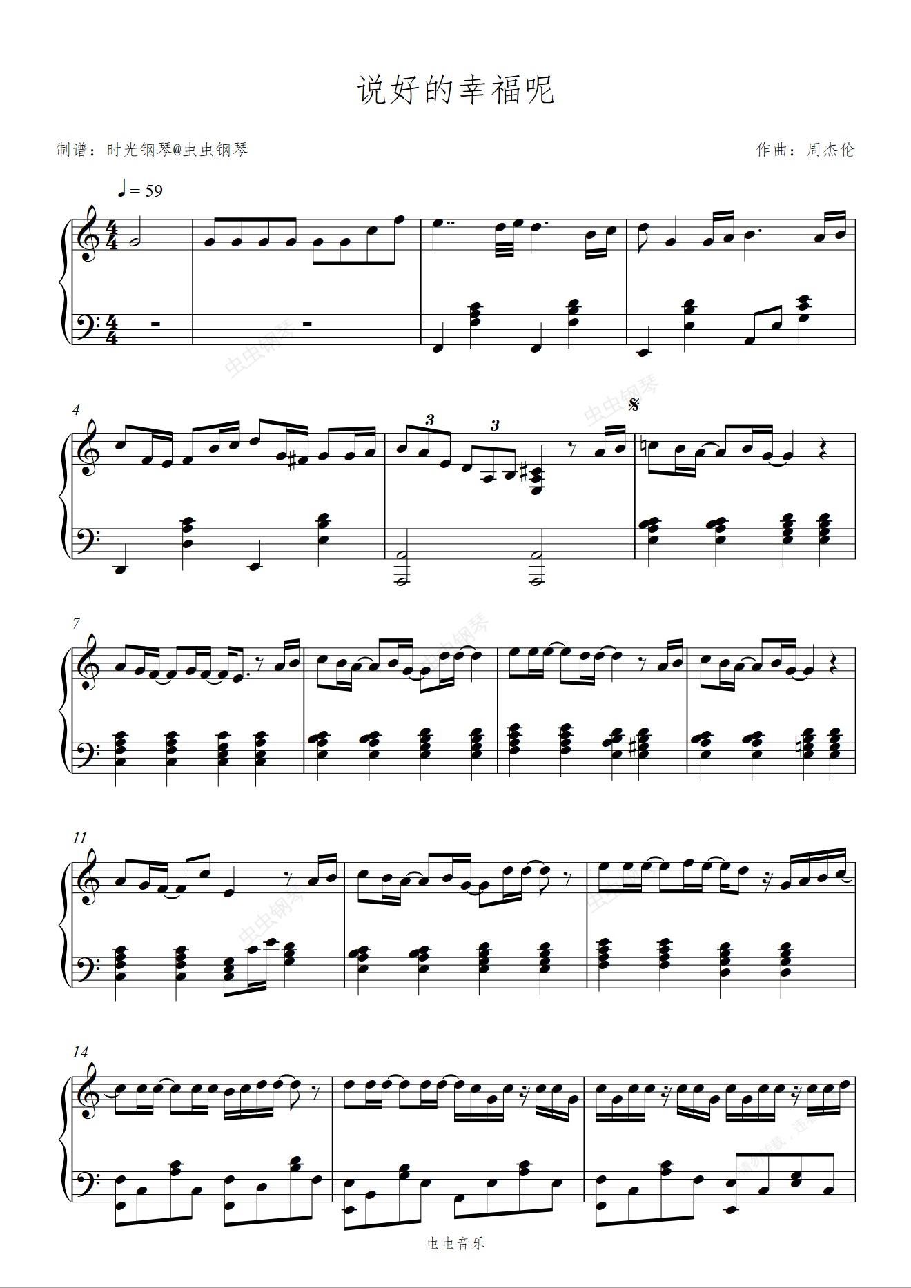 钢琴谱:说好的幸福呢 C调简易 周杰伦