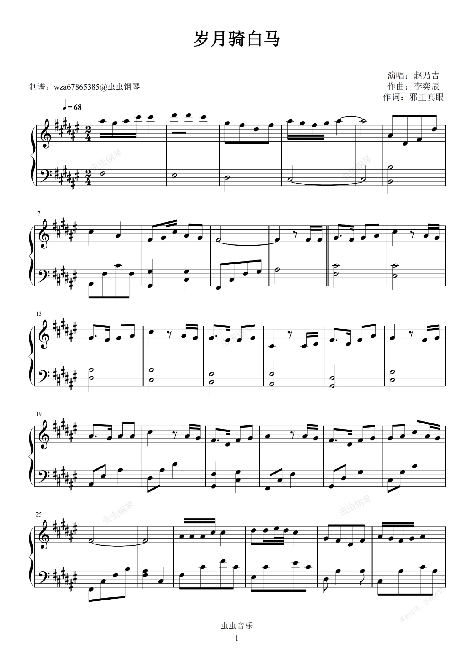 钢琴谱:岁月骑白马
