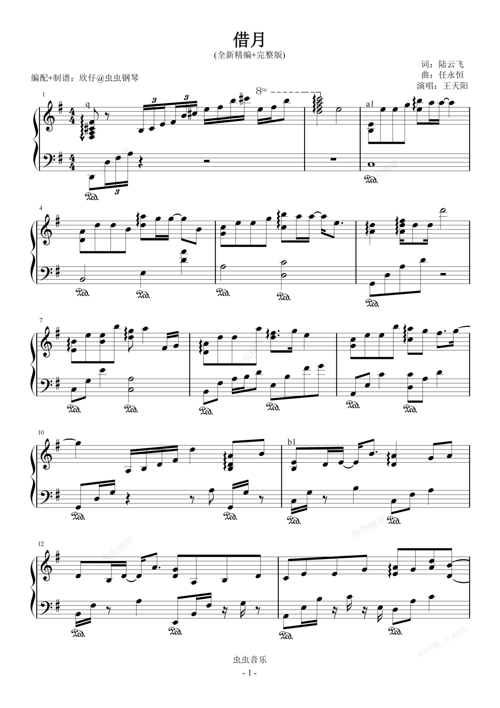 钢琴谱:王天阳-G《借月》(全新精编+完整版)