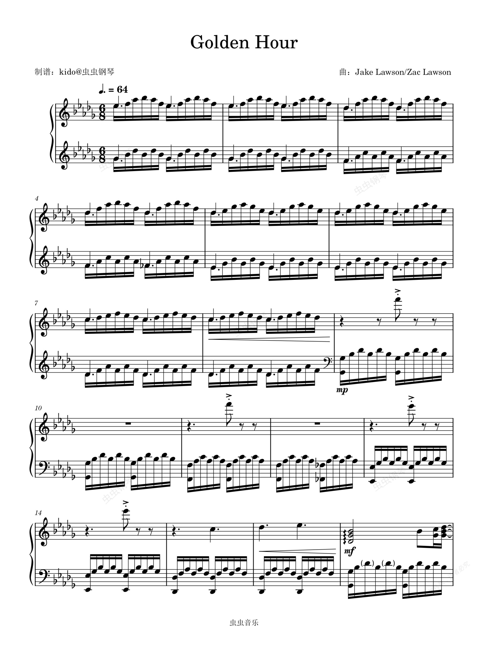 钢琴谱:Golden Hour 降D大调弹唱谱
