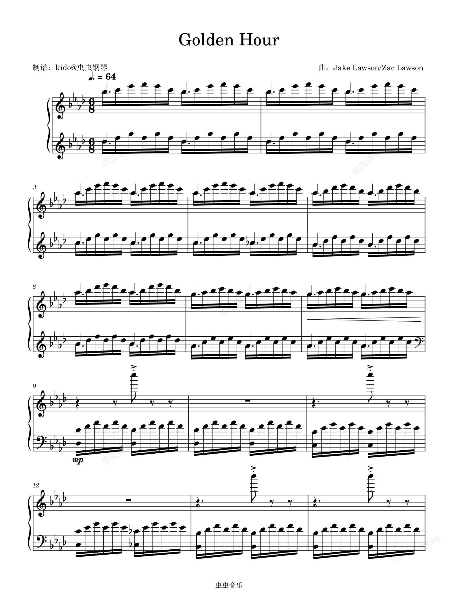 钢琴谱:Golden Hour 降A大调弹唱谱