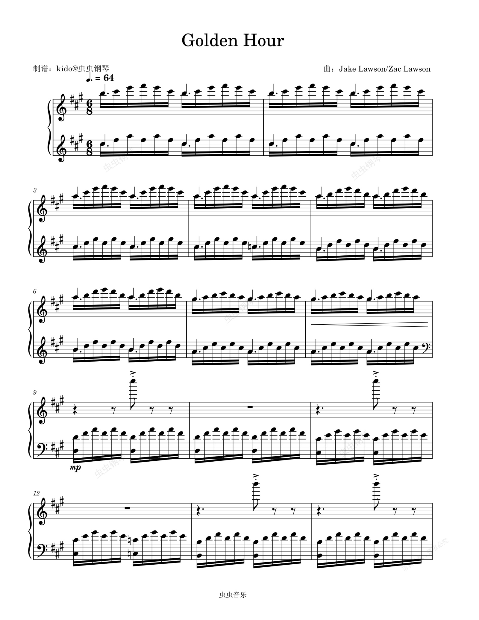 钢琴谱:Golden Hour A大调弹唱谱
