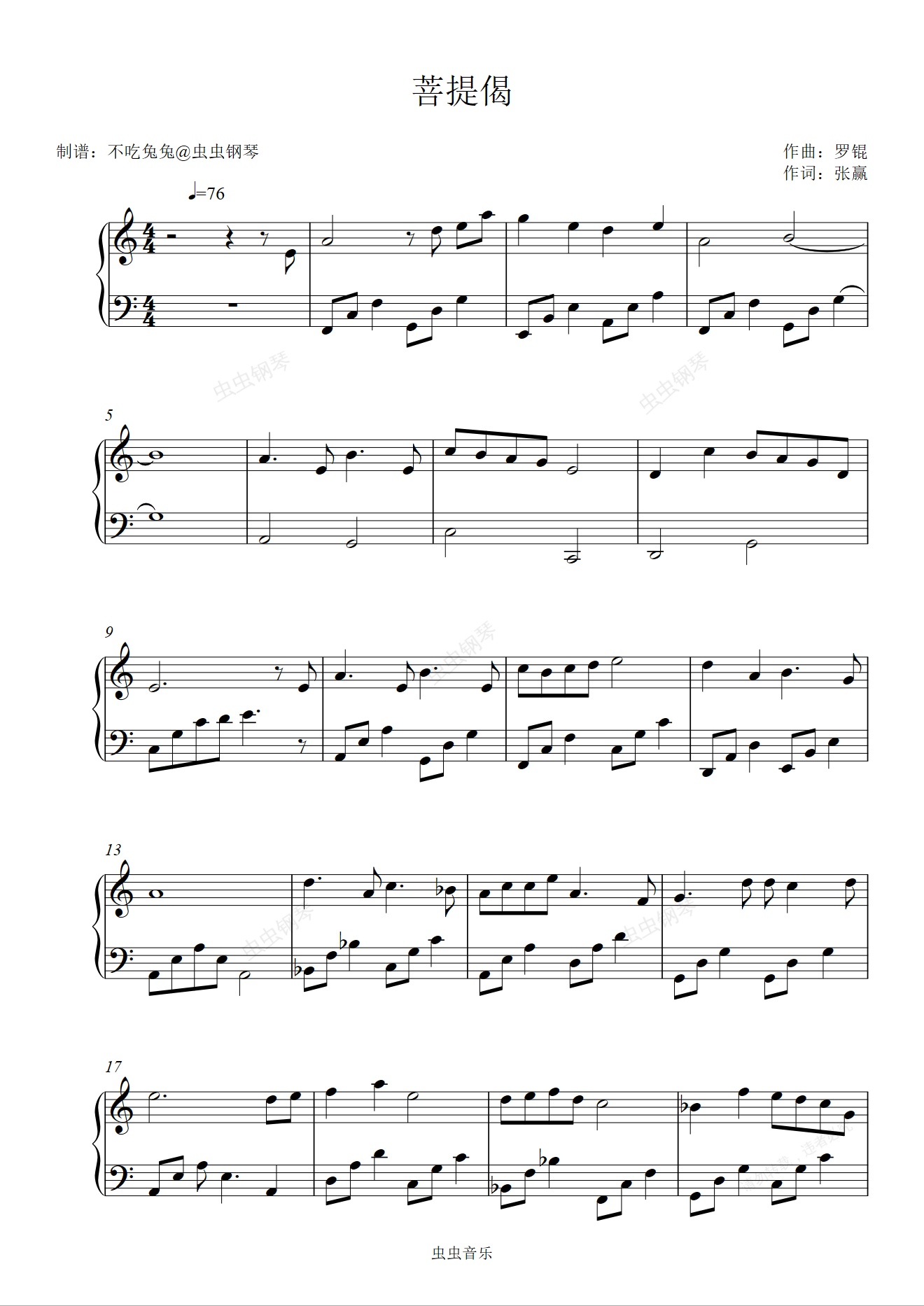 钢琴谱:菩提偈 《孤独天下》片尾曲 C调初学者