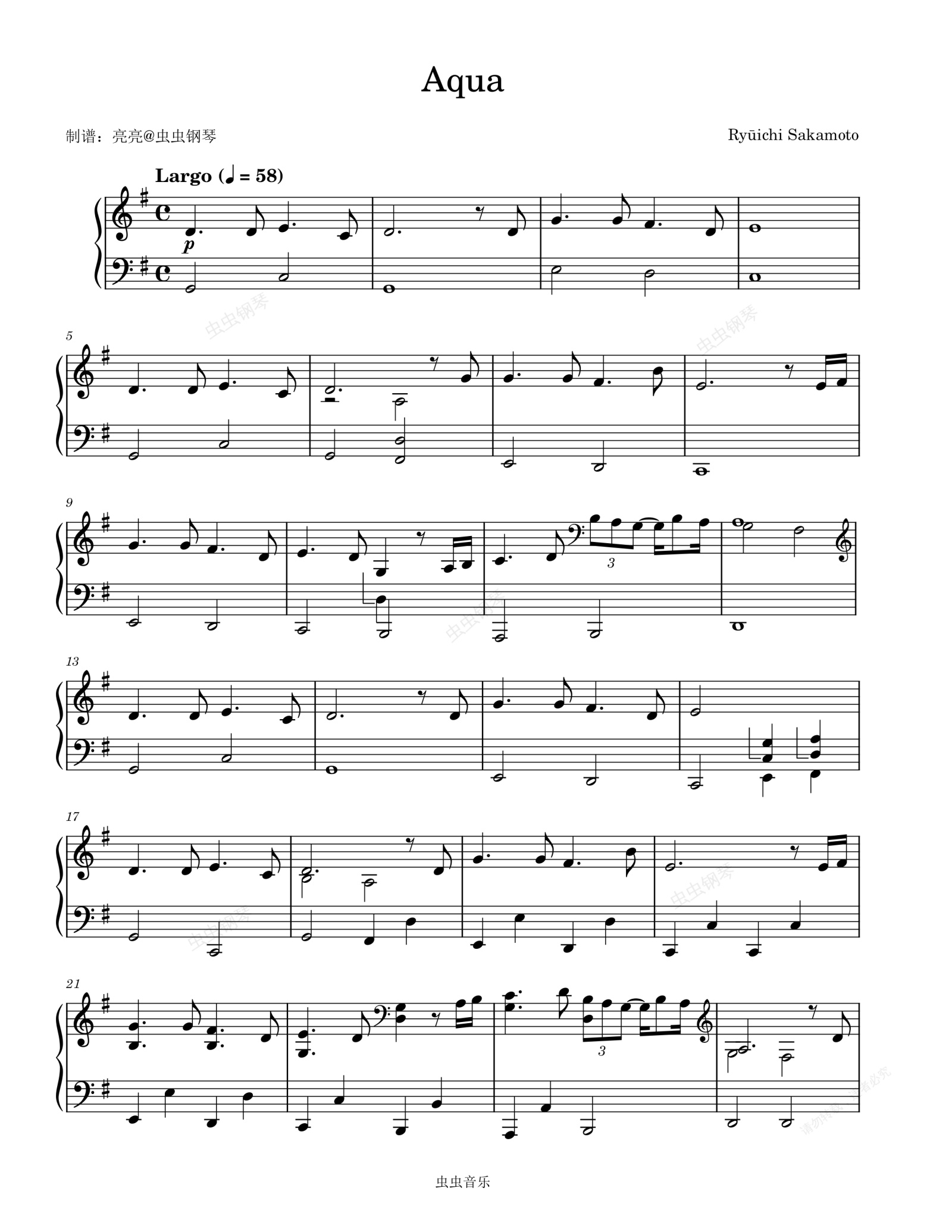 钢琴谱:Aqua - 坂本龙一 (さかもと りゅういち)