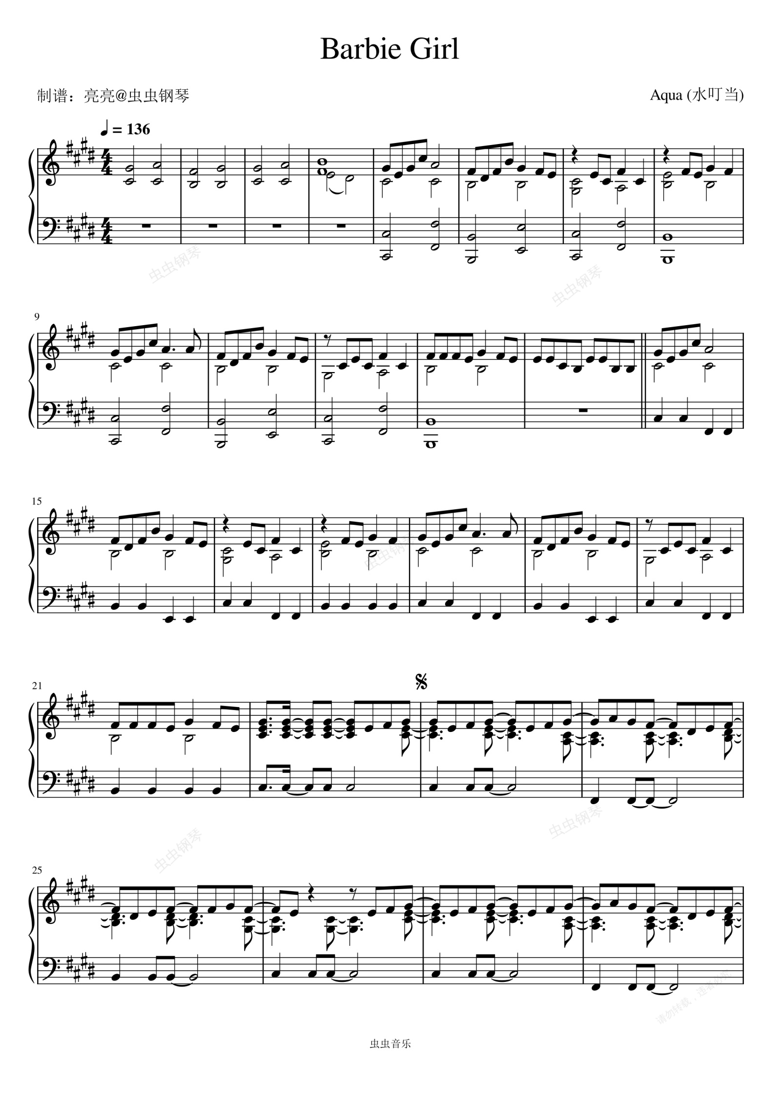 钢琴谱:Barbie Girl - Aqua (水叮当)