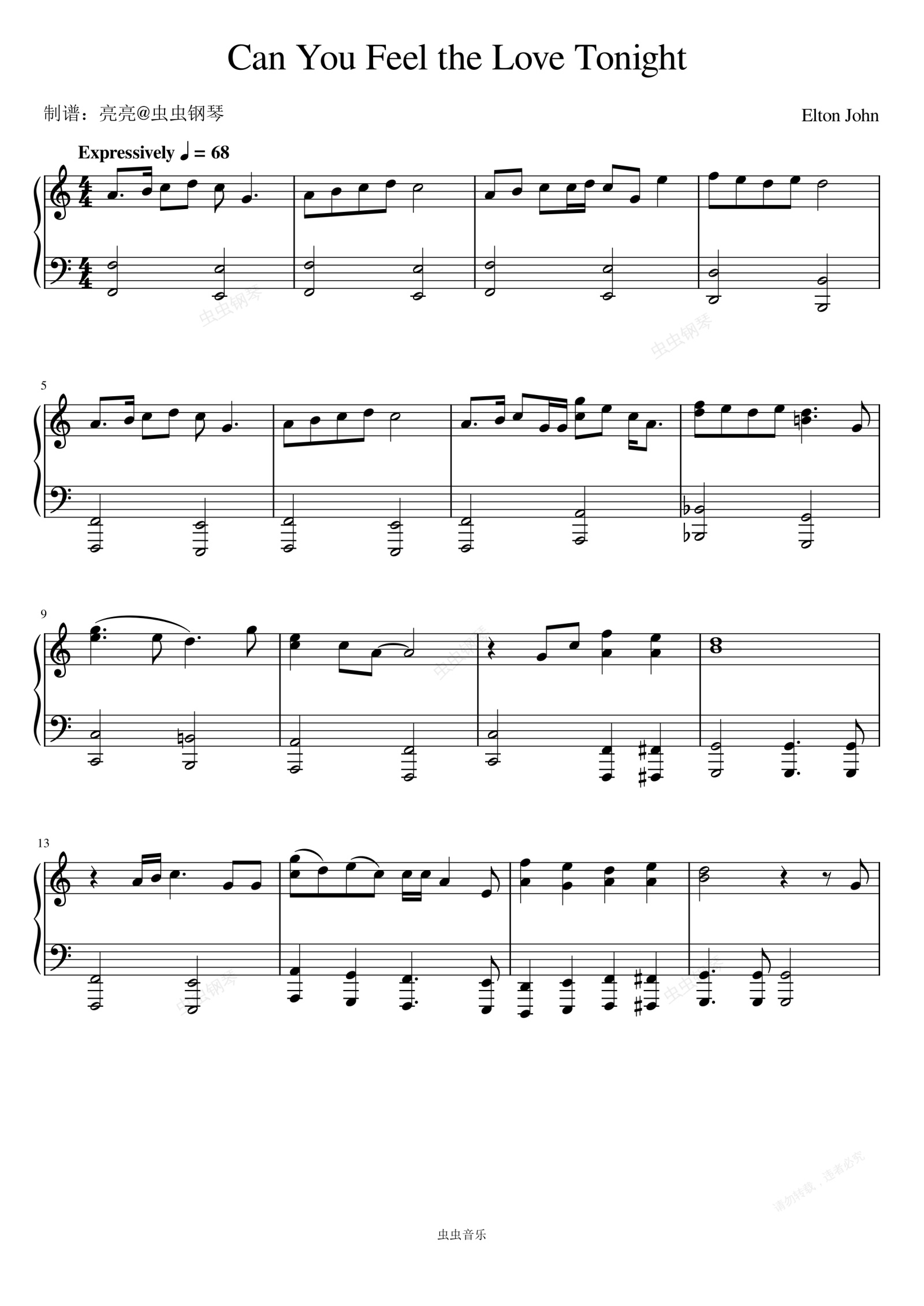 钢琴谱:Can You Feel The Love Tonight - Elton John