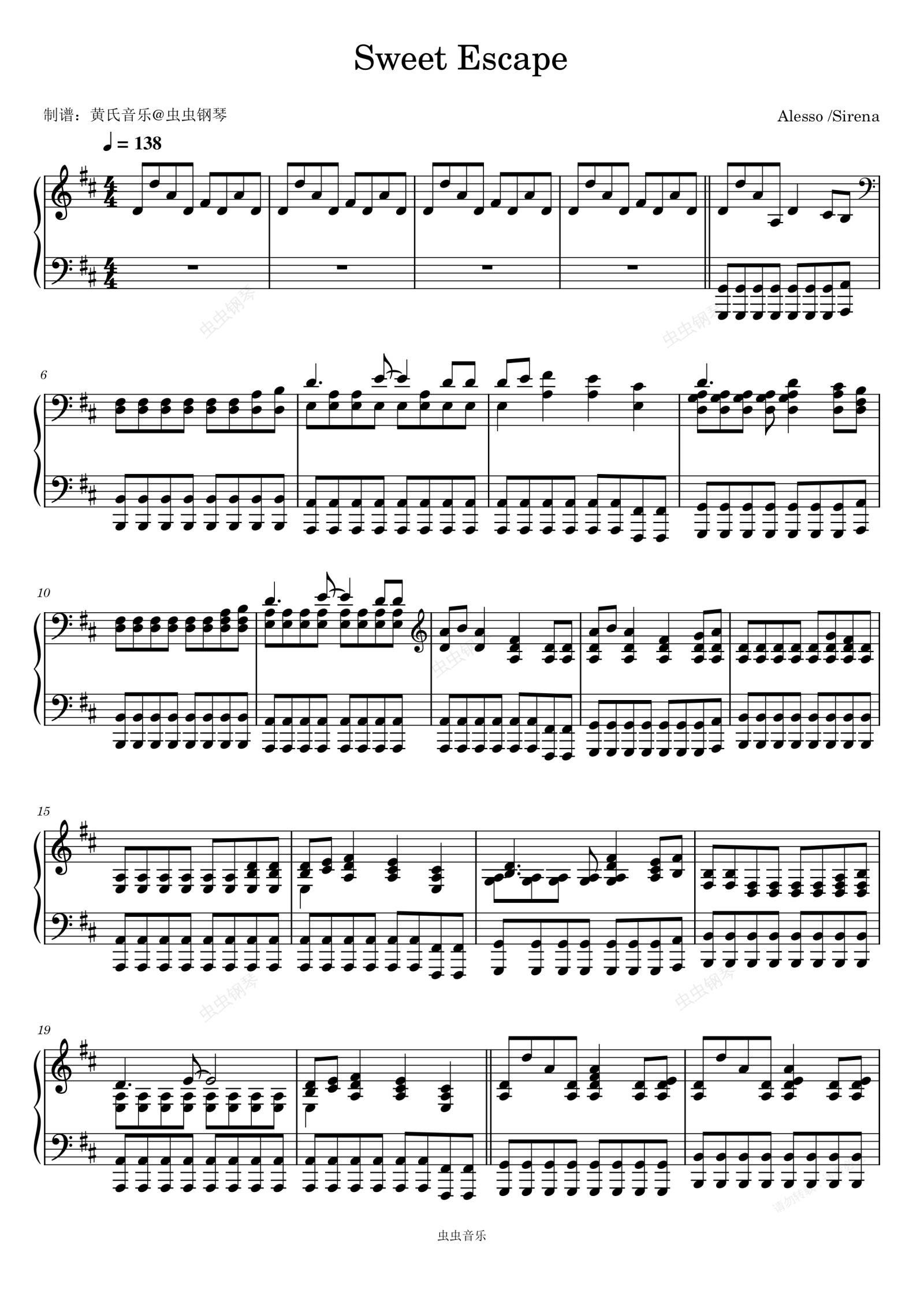 钢琴谱:Sweet Escape - Alesso (艾利索)/Sirena