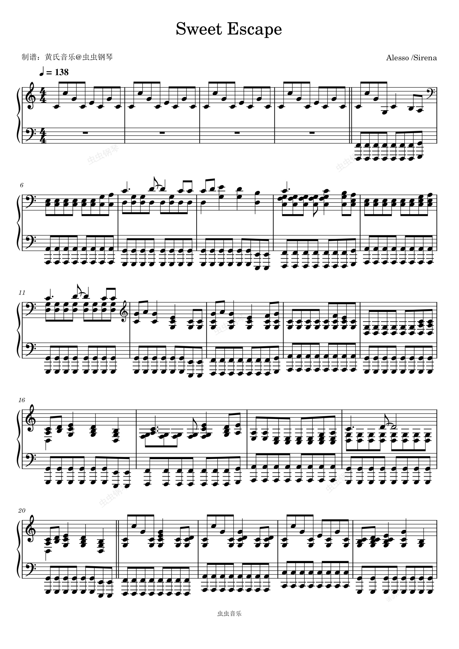 钢琴谱:Sweet Escape - Alesso (艾利索)/Sirena