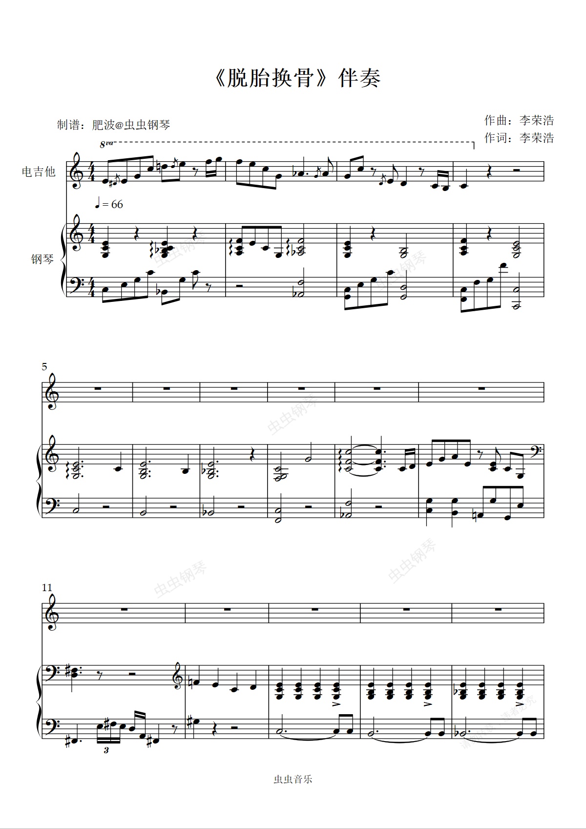 钢琴谱:脱胎换骨-李荣浩 钢琴伴奏弹唱谱