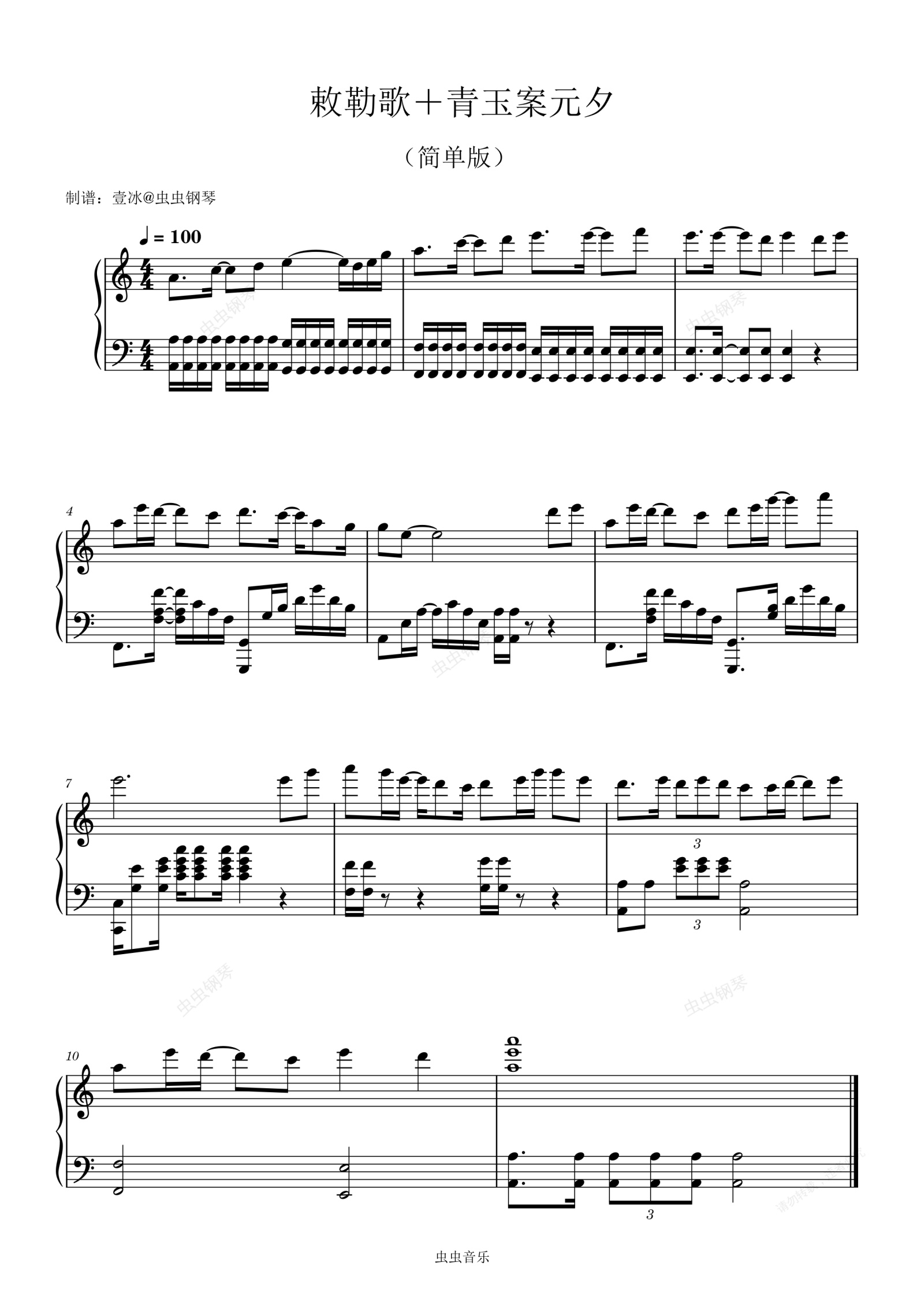 钢琴谱:敕勒歌+青玉案元夕-C调版