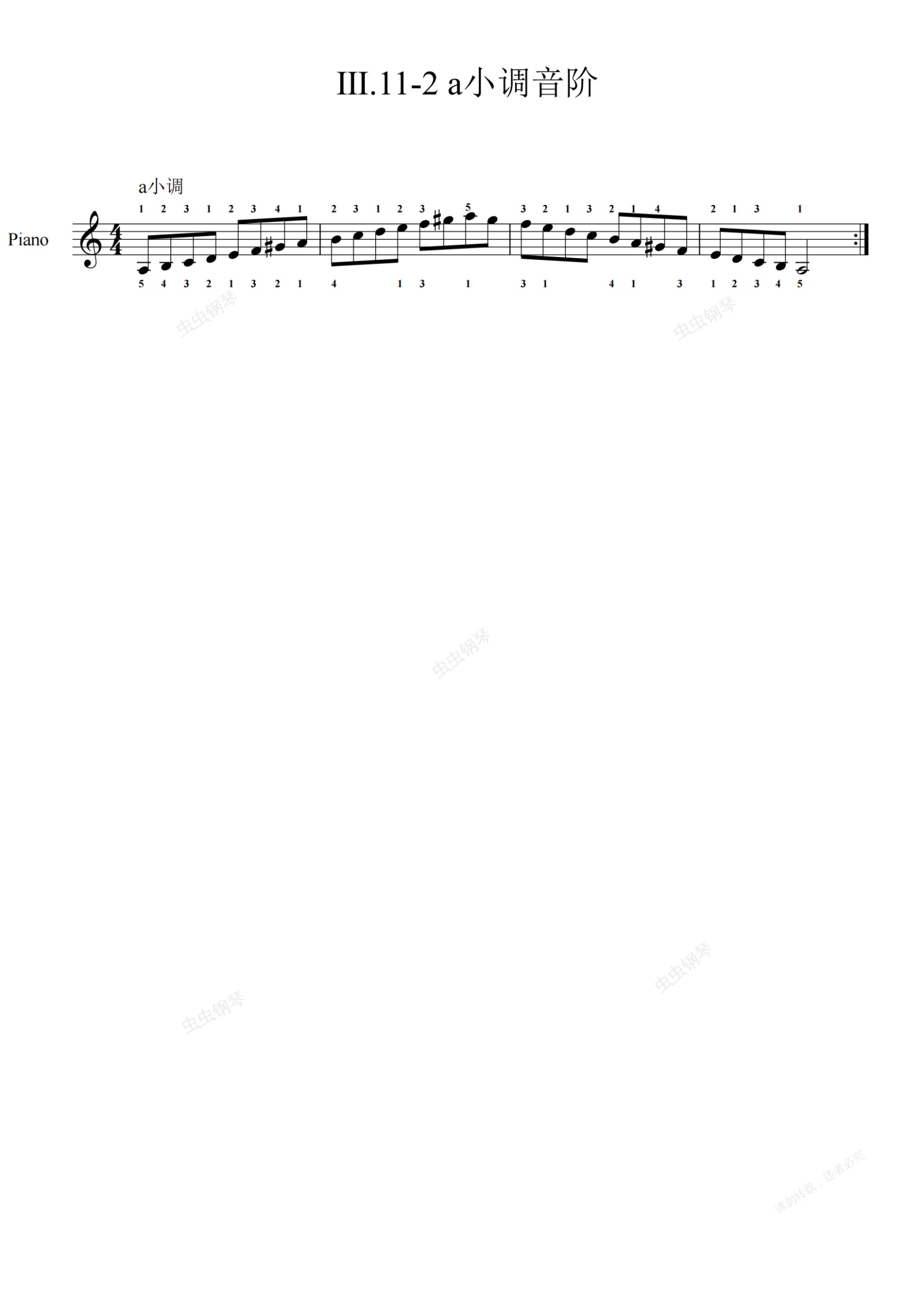 钢琴谱:Ⅲ.11-2 a小调音阶