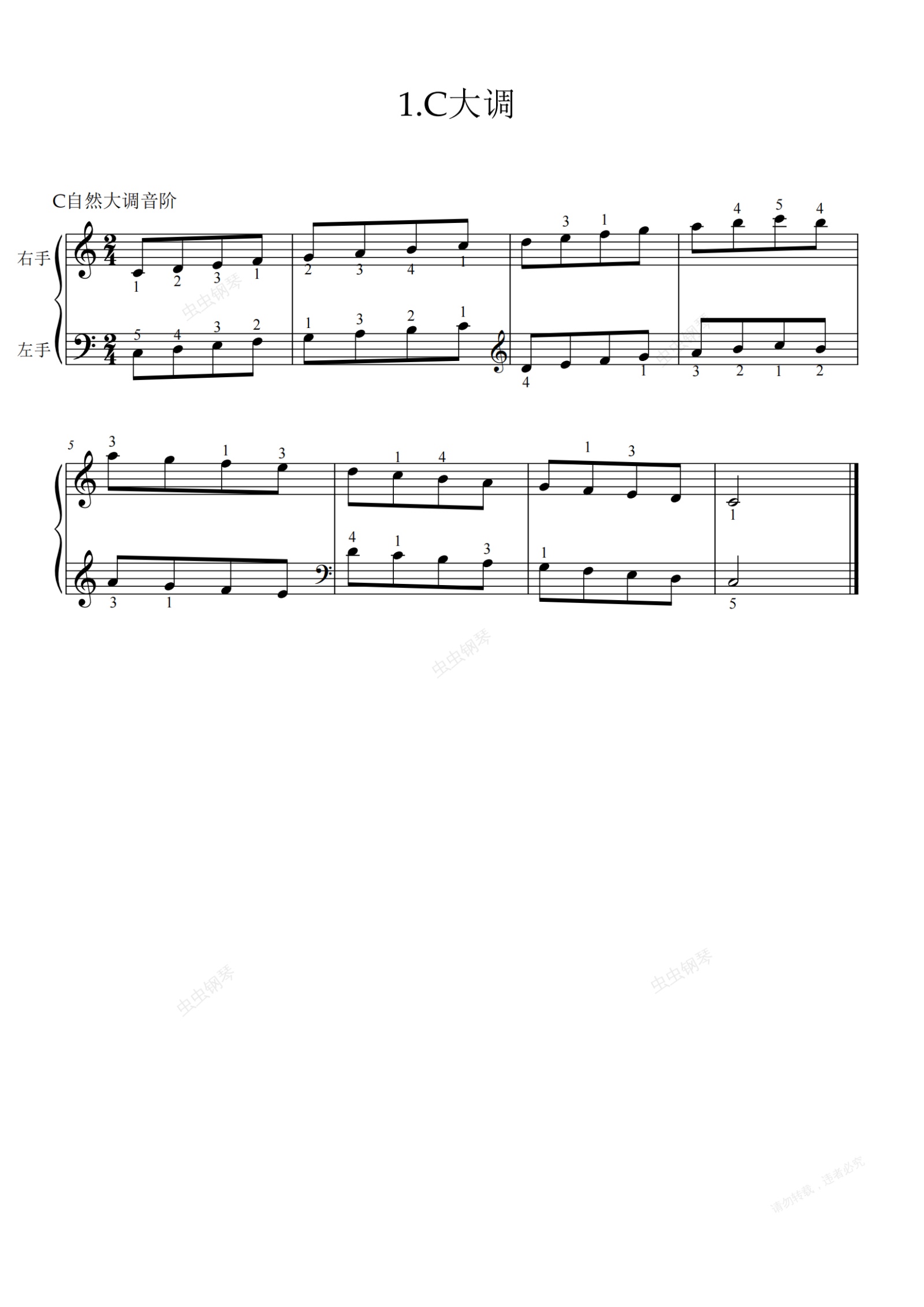 钢琴谱:第基本练习-1.C自然大调音阶