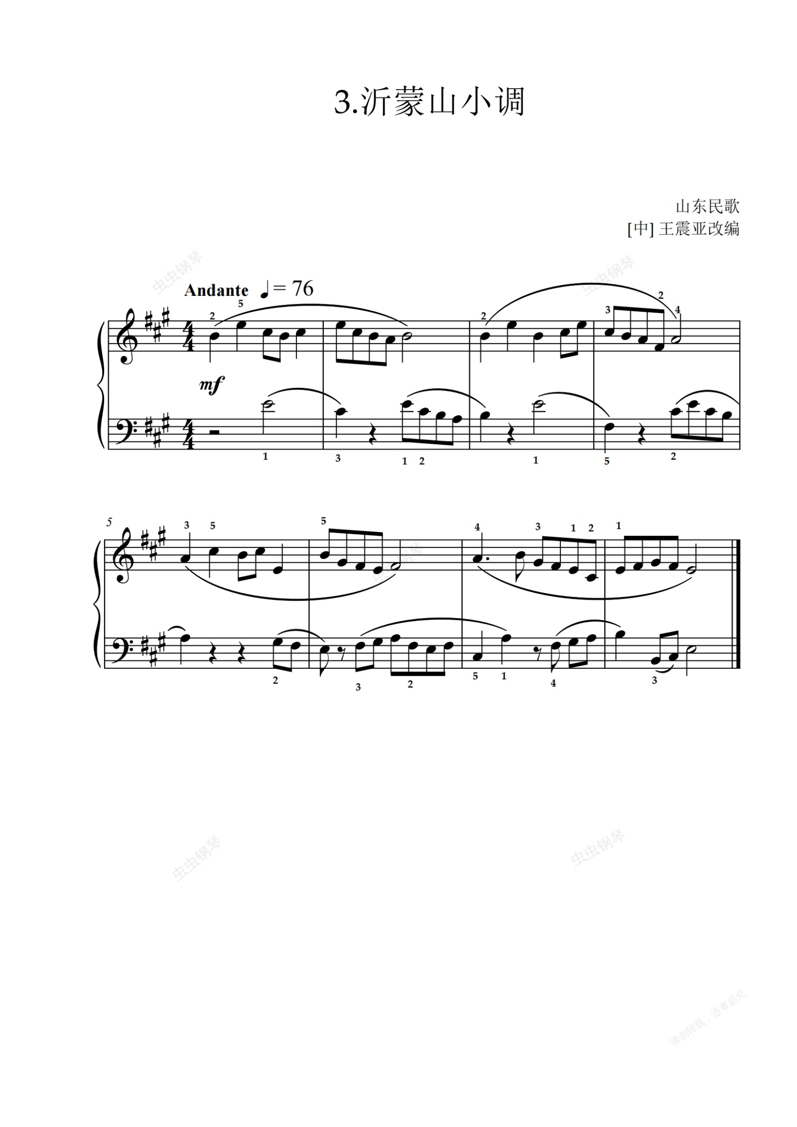 钢琴谱:第B项-3.沂蒙山小调