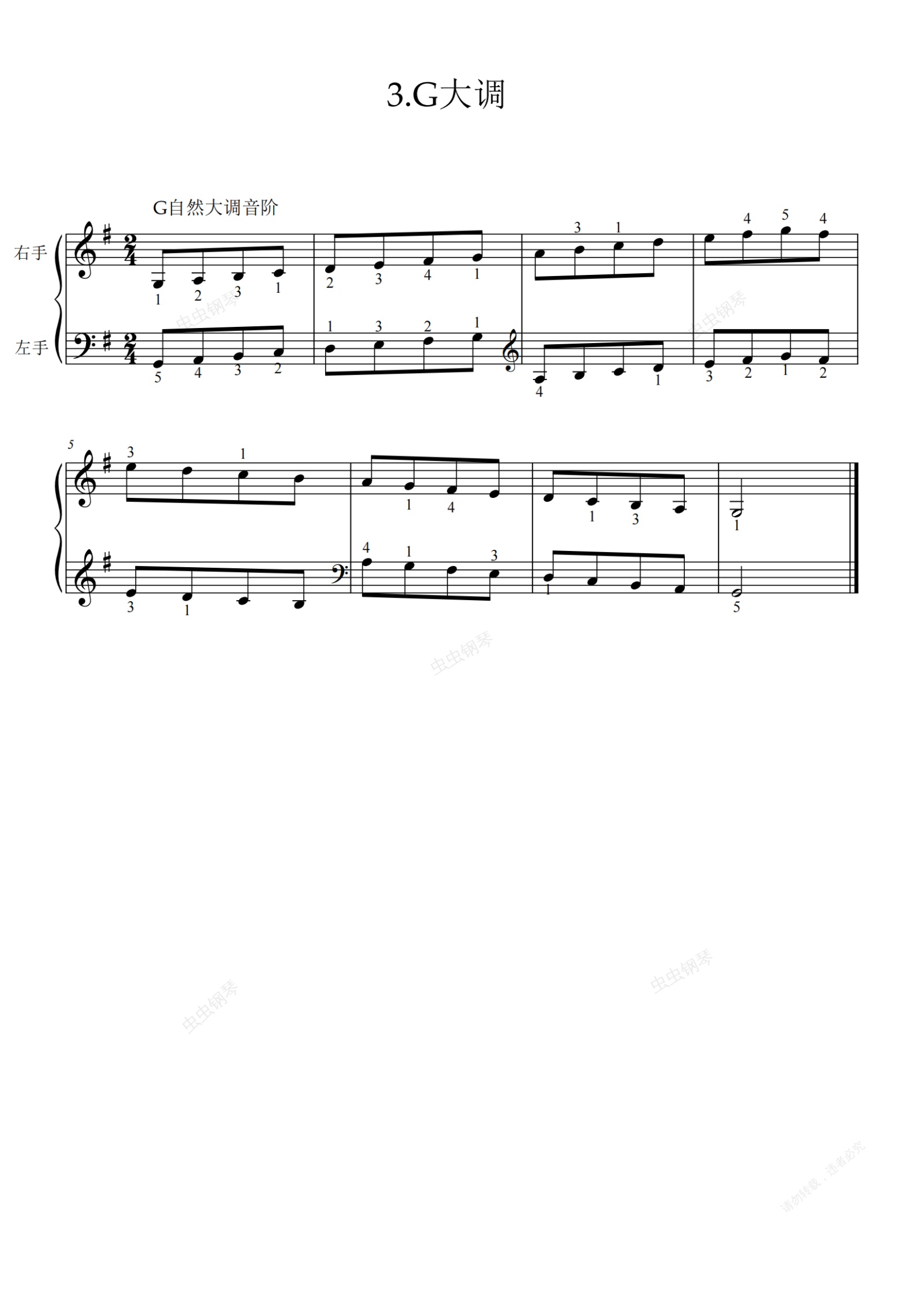 钢琴谱:第基本练习-3.G自然大调音阶