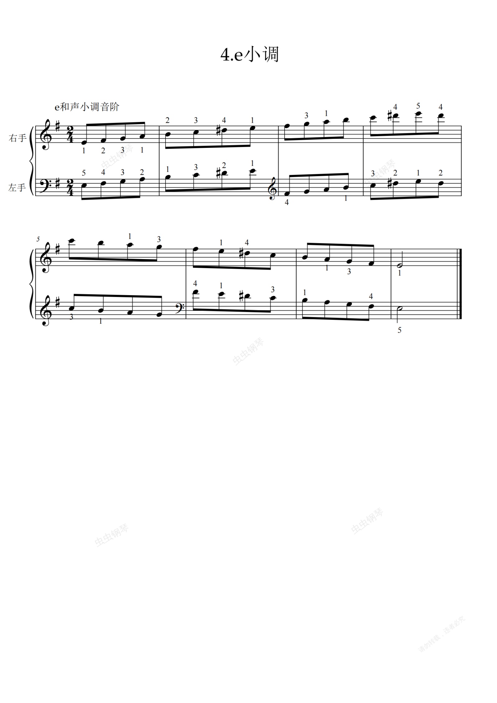 钢琴谱:第基本练习-4.e和声小调音阶