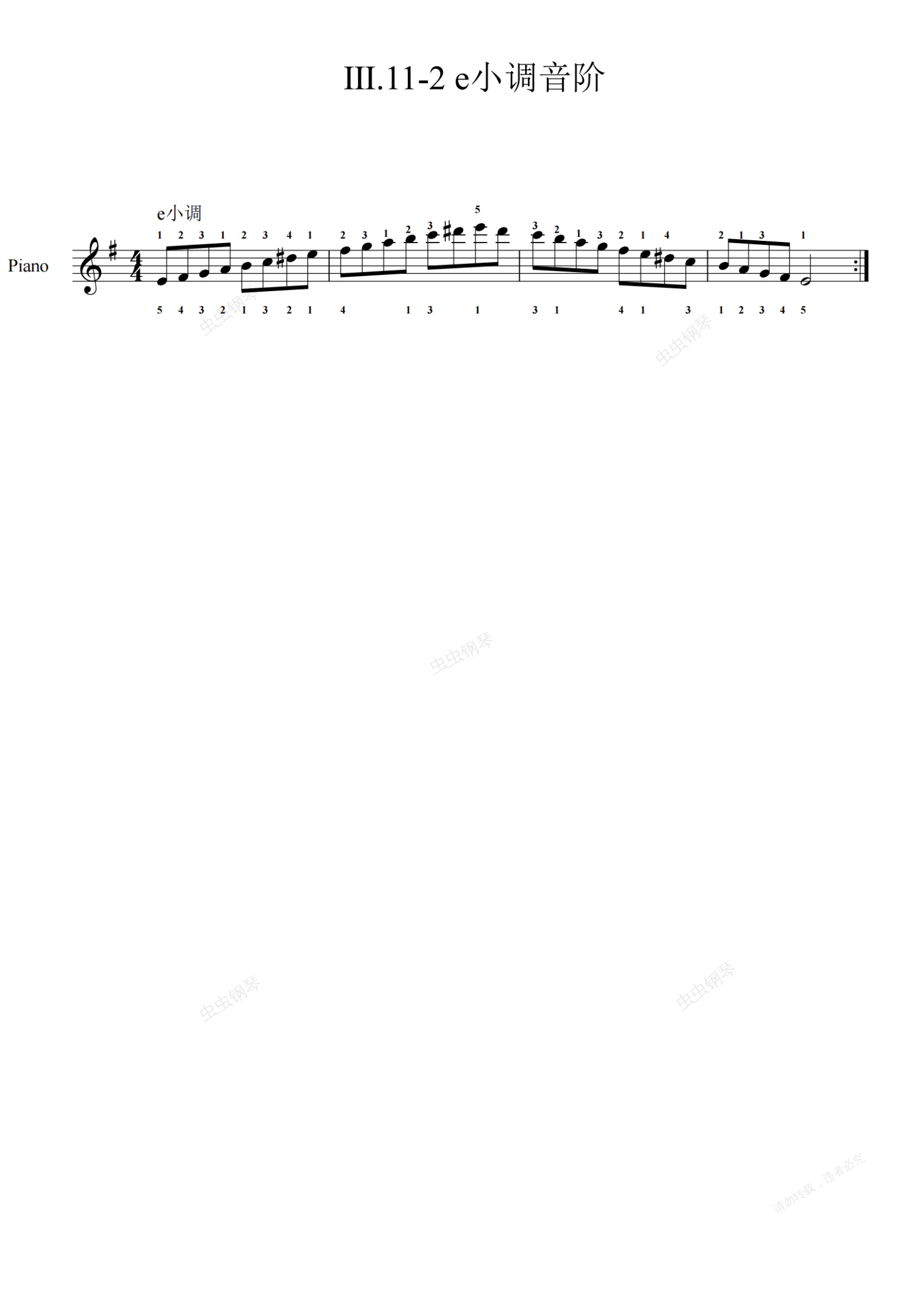 钢琴谱:Ⅲ.11-2 e小调音阶