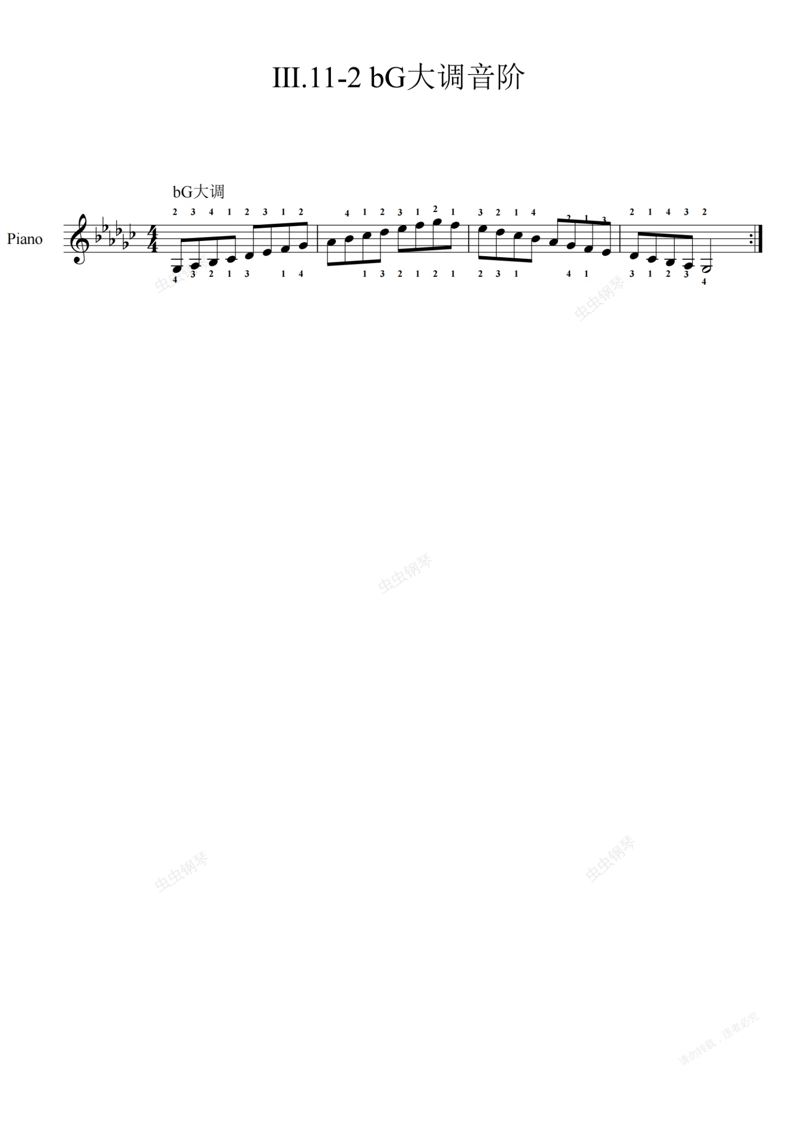 钢琴谱:Ⅲ.11-2 bG大调音阶