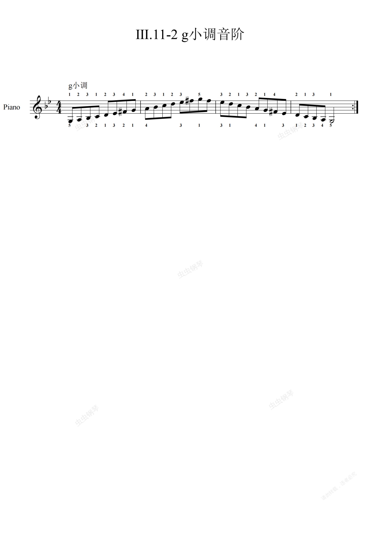 钢琴谱:Ⅲ.11-2 g小调音阶