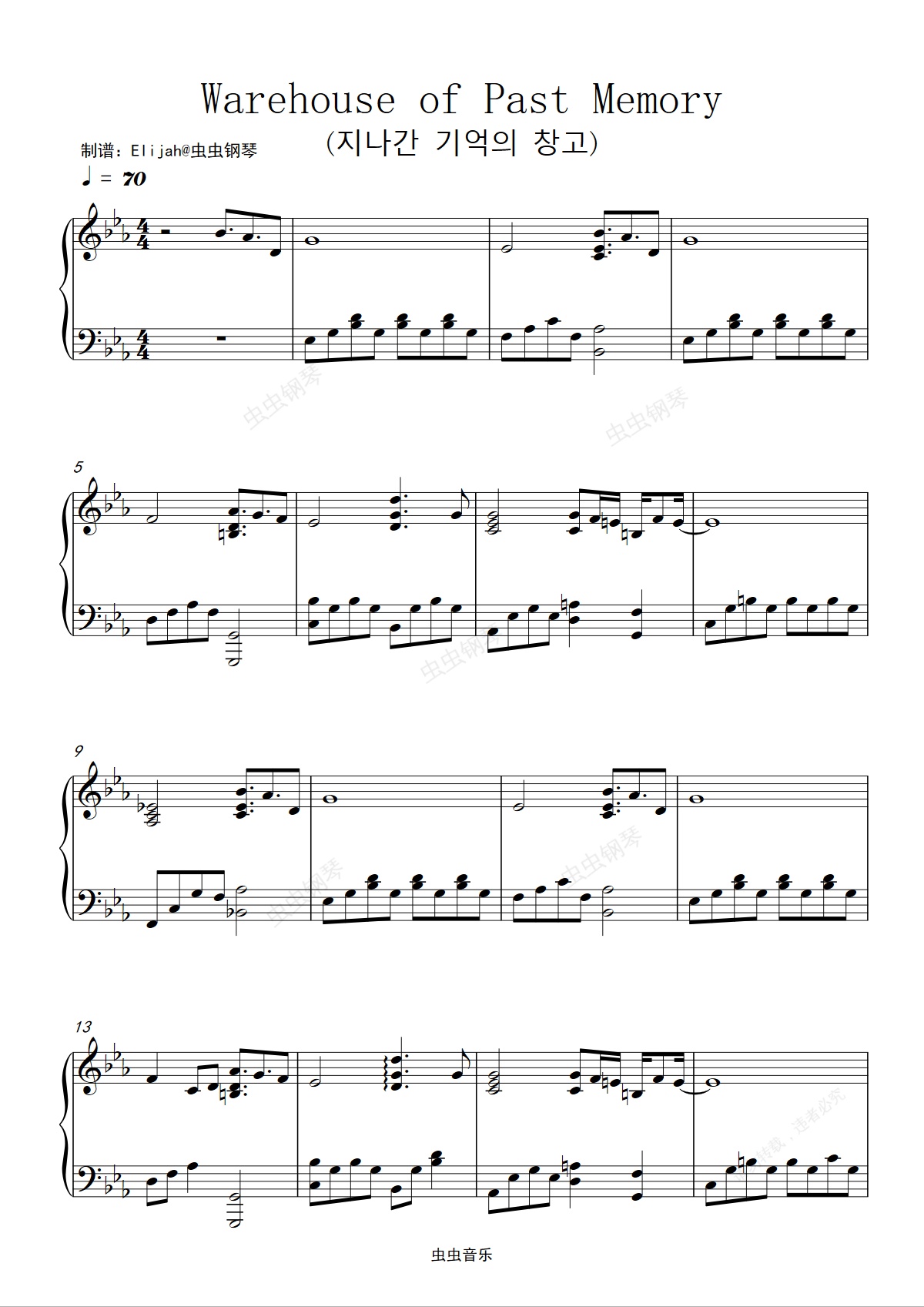 钢琴谱:Warehouse of Past Memory (지나간 기억의 창고)