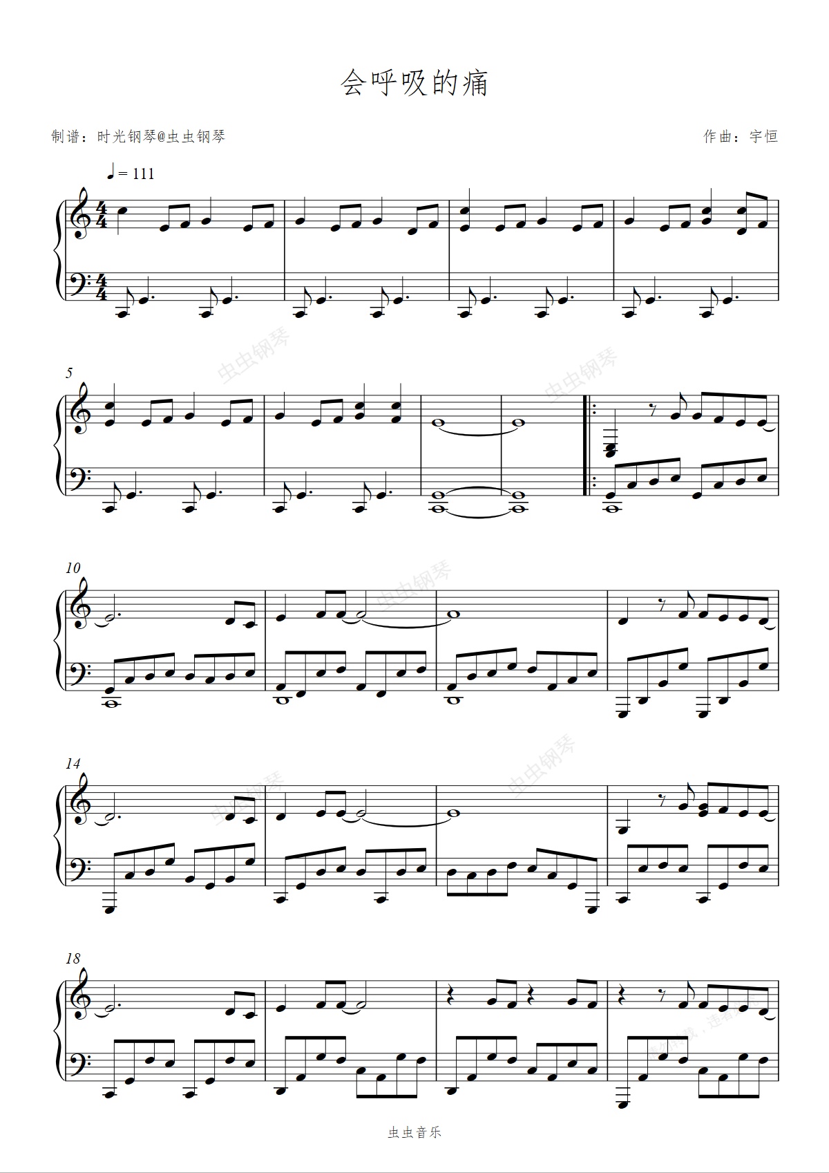 钢琴谱:会呼吸的痛 C调简易 梁静茹