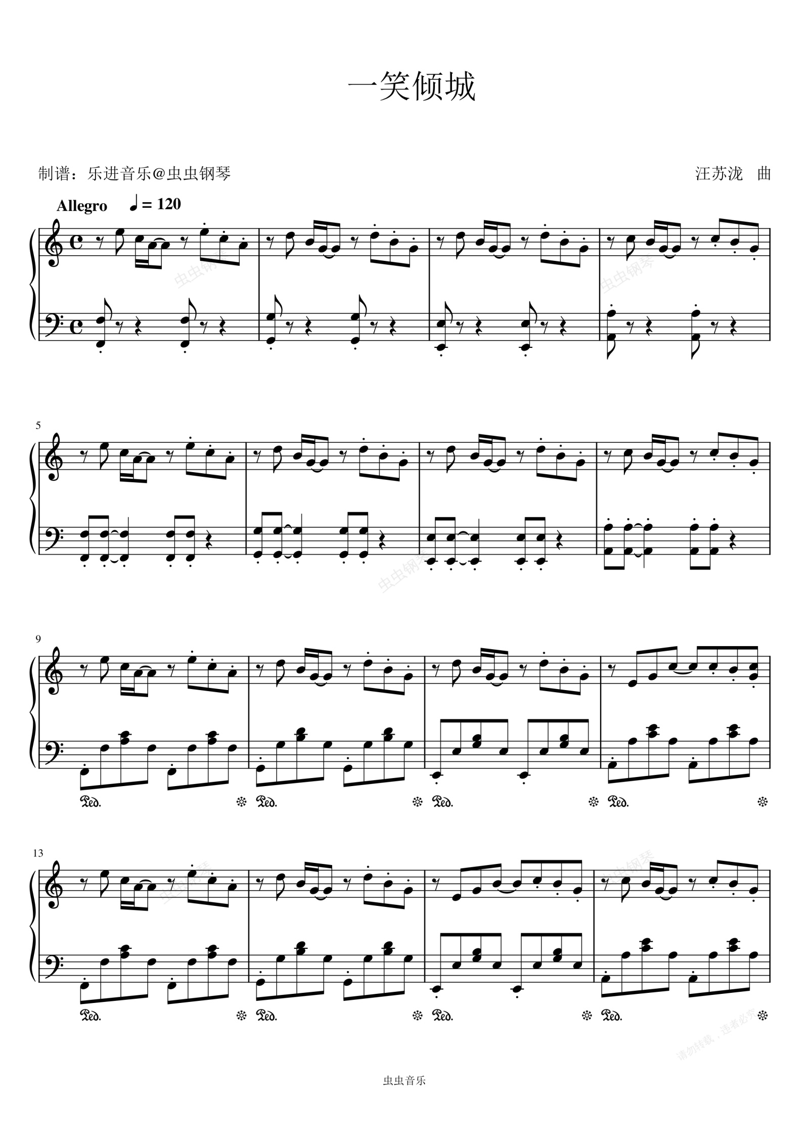 钢琴谱:《一笑倾城》C调
