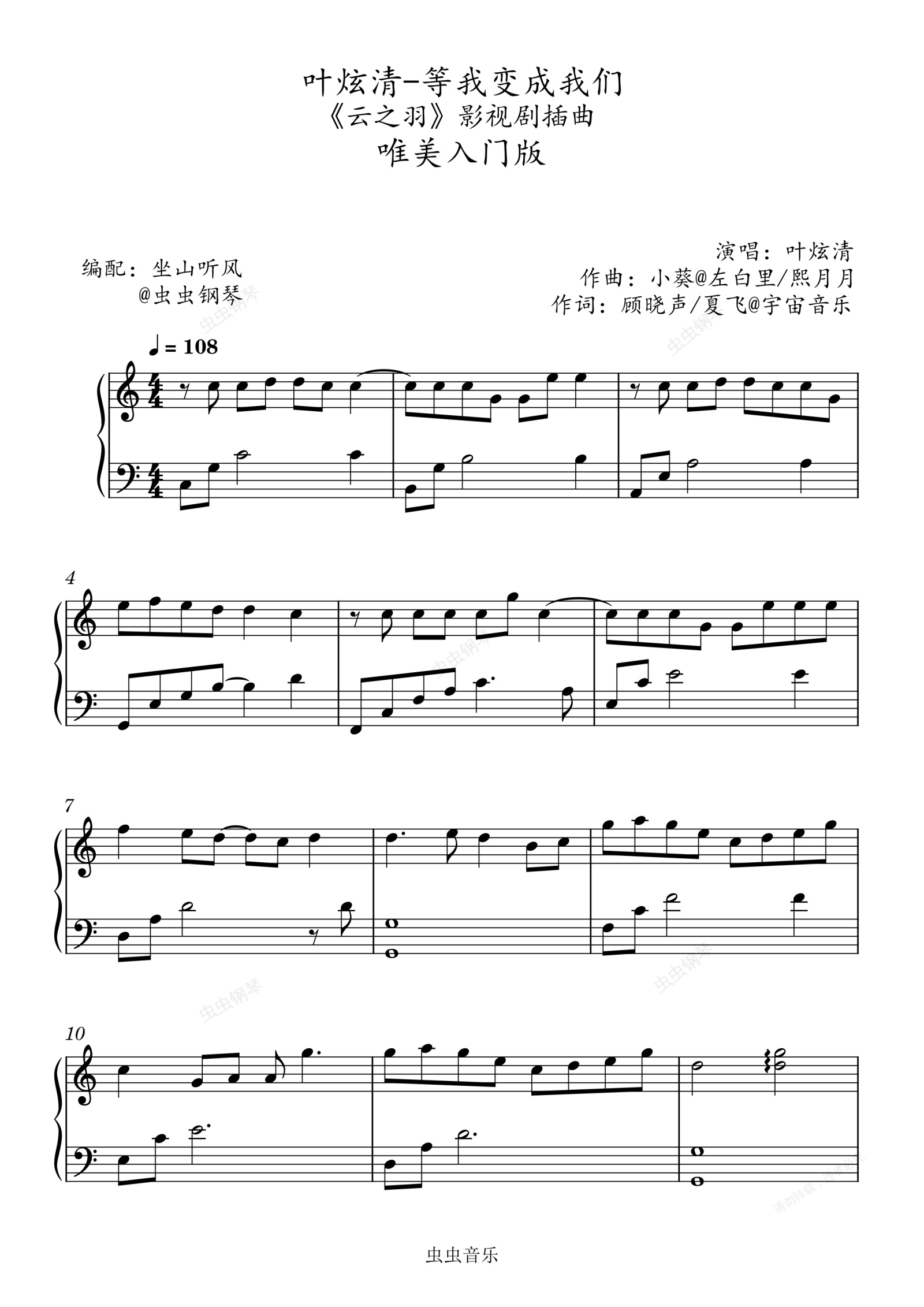 钢琴谱:叶炫清-《等我变成我们》——【云之羽】影视剧插曲 唯美入门版