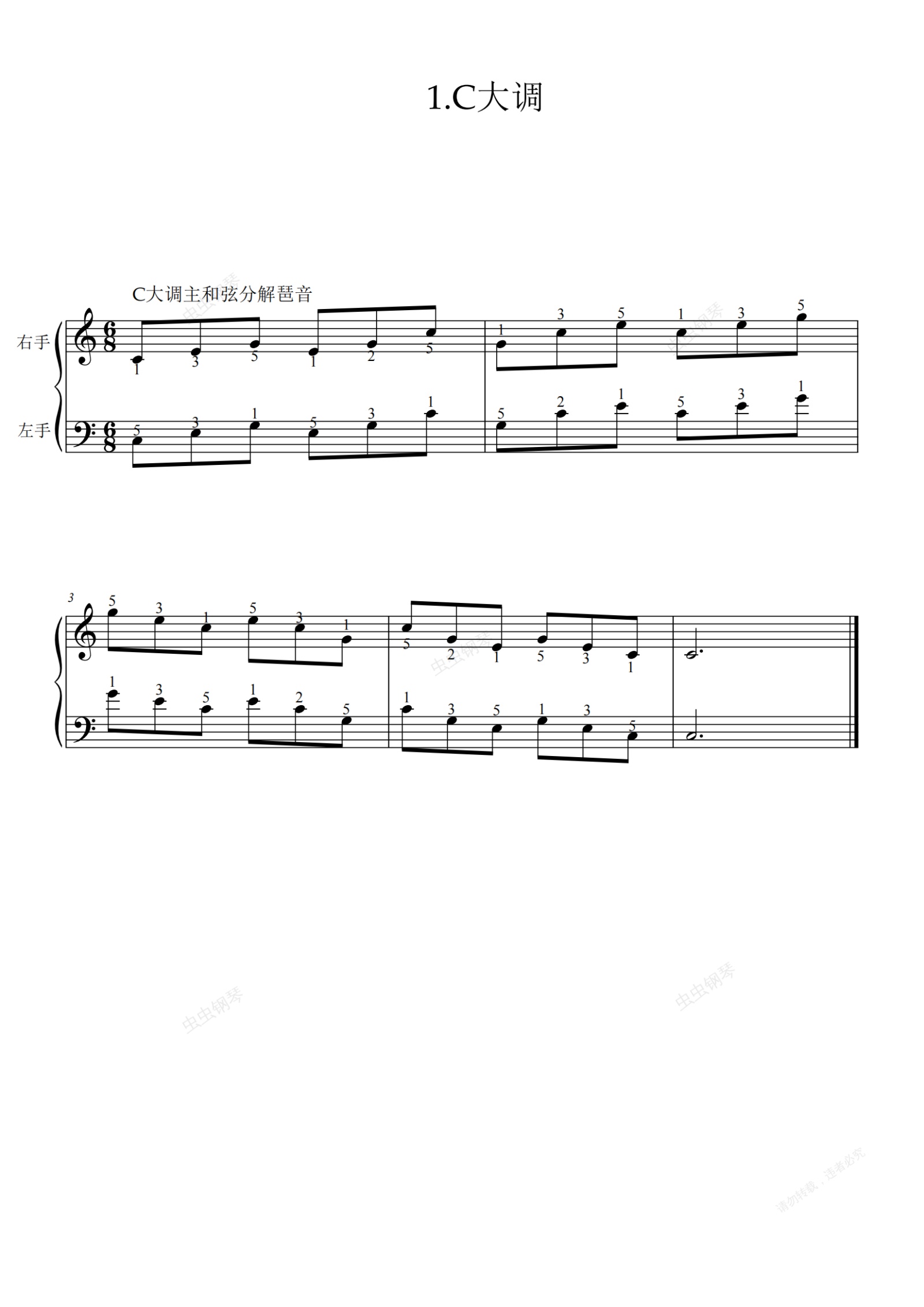 钢琴谱:第基本练习-2.C大调主和弦分解琶音