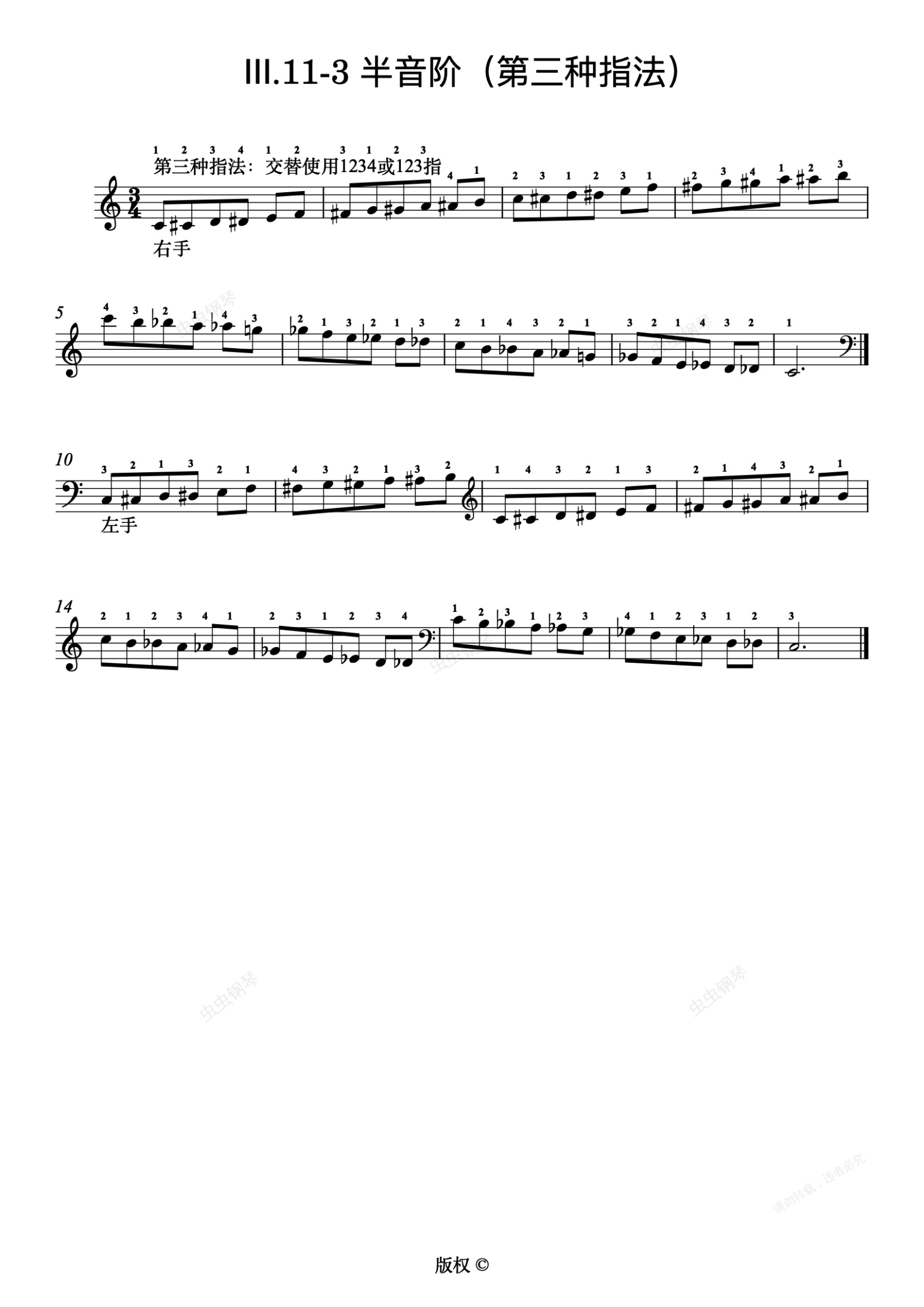钢琴谱:135.Ⅲ.11-3 半音阶(第三种指法)