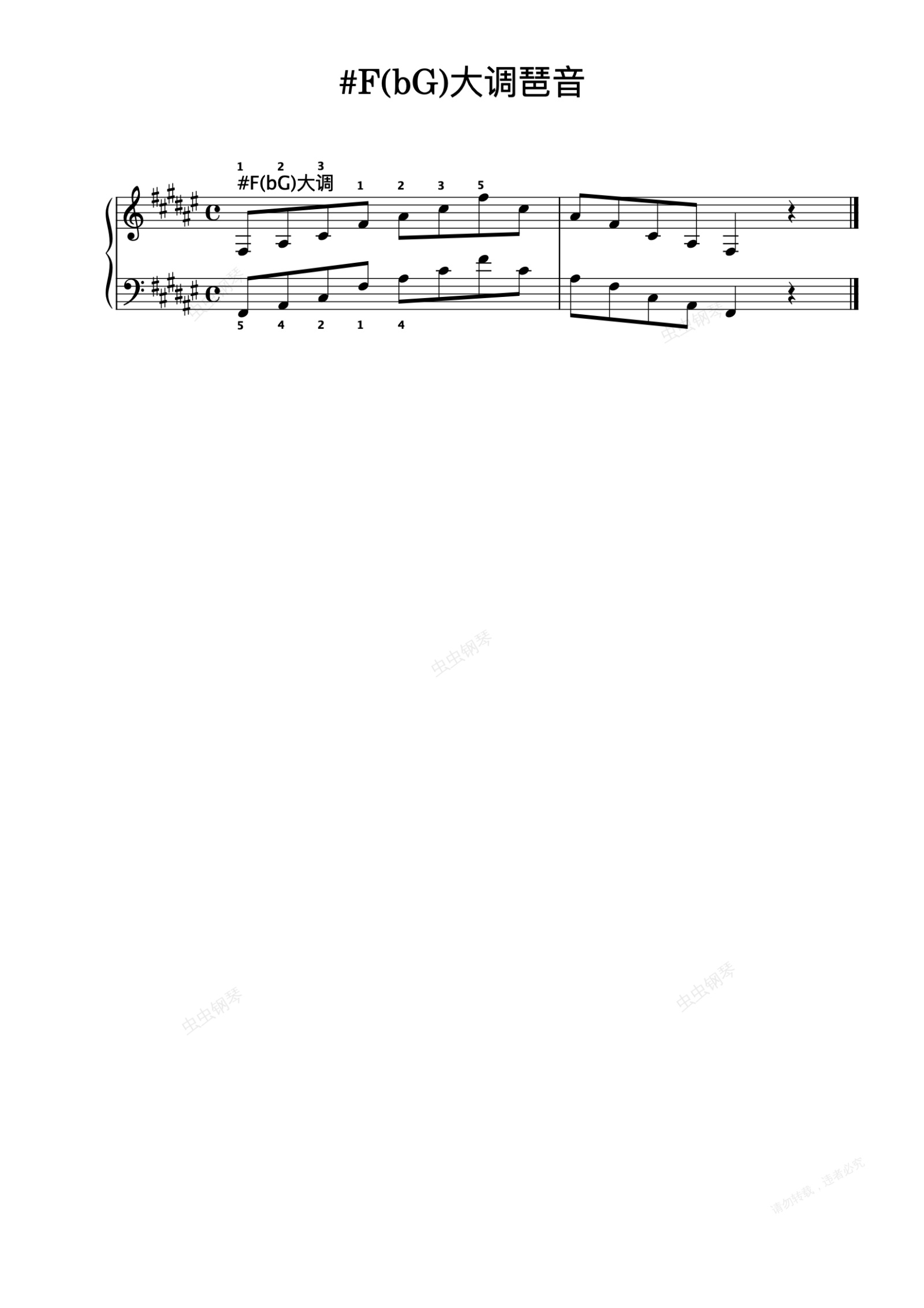 钢琴谱:152.Ⅲ.11-4 #F(bG)大调琶音