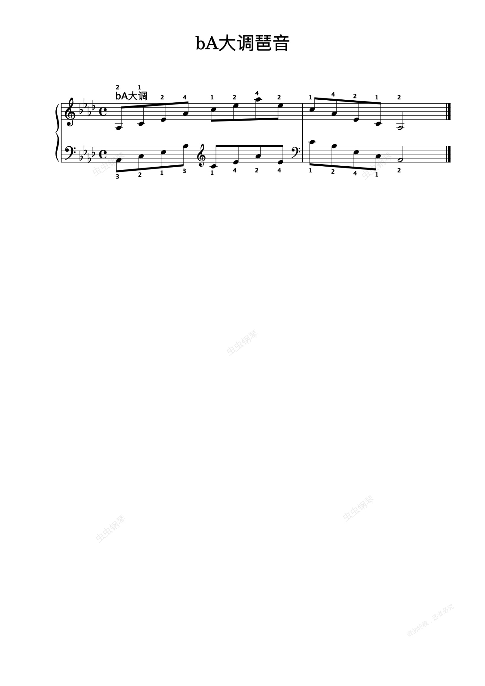 钢琴谱:156.Ⅲ.11-4 bA大调琶音