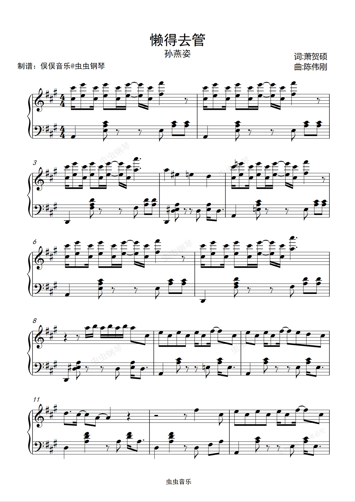 钢琴谱:孙燕姿 - 懒得去管(简易版)