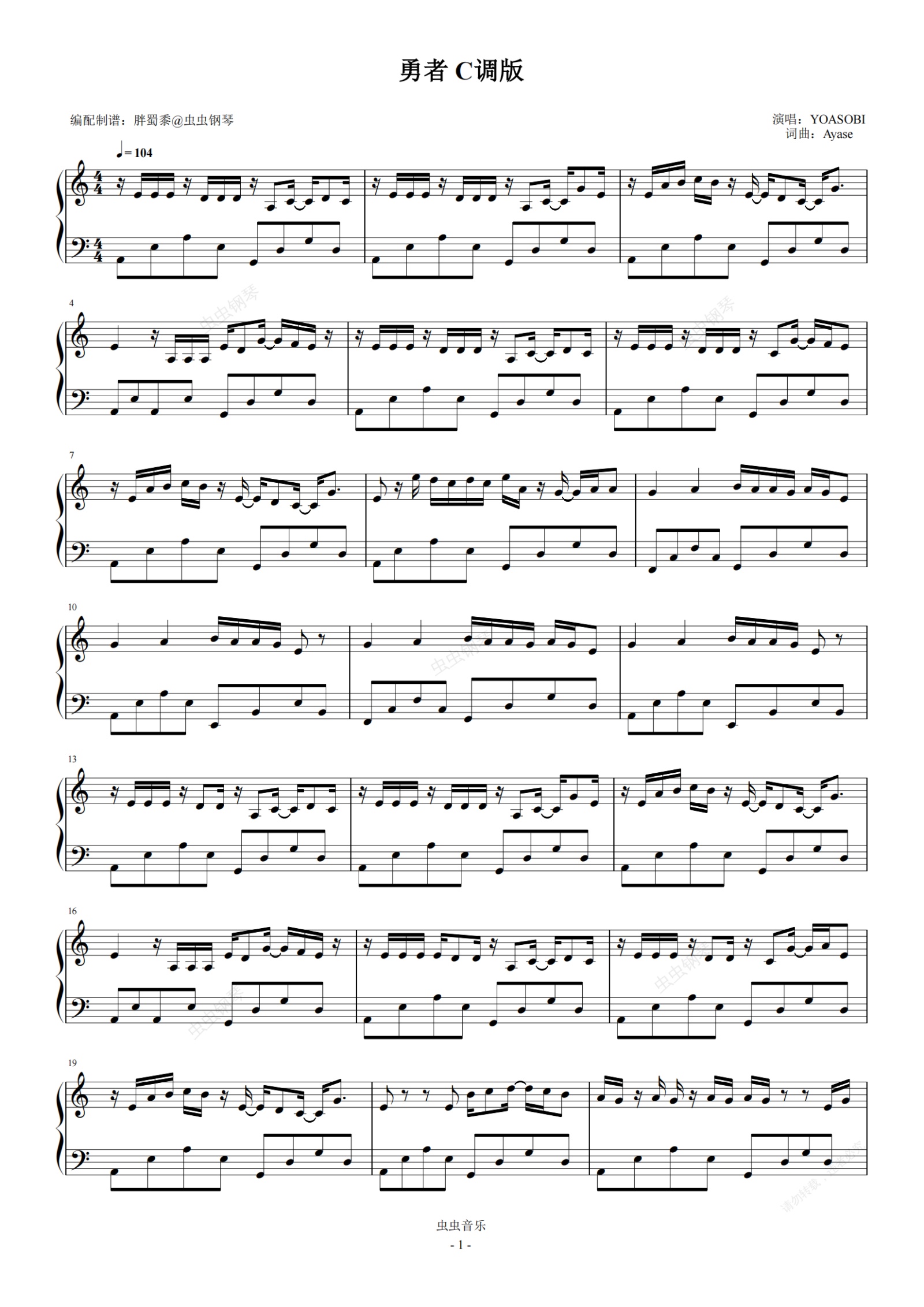 钢琴谱:YOASOBI-勇者(葬送的芙莉莲OP)C调完整版
