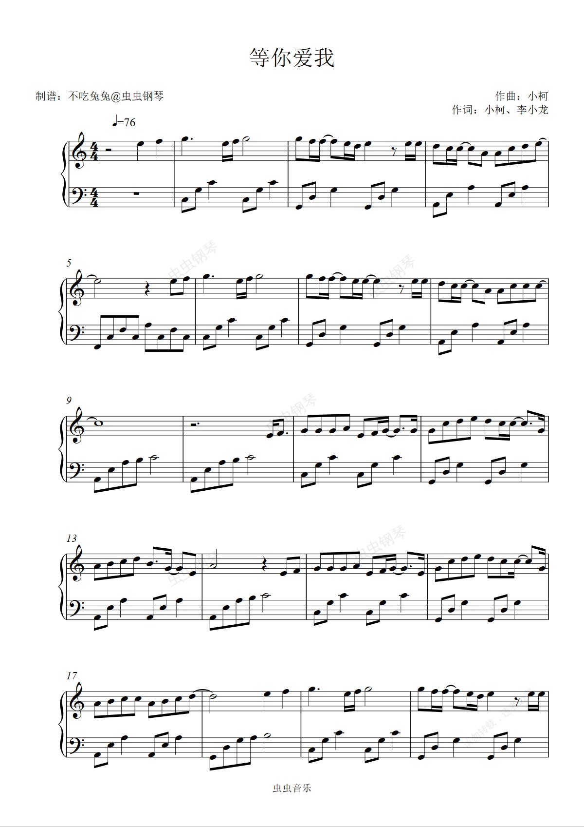 钢琴谱:等你爱我 《将爱情进行到底》的插曲 初学者C调