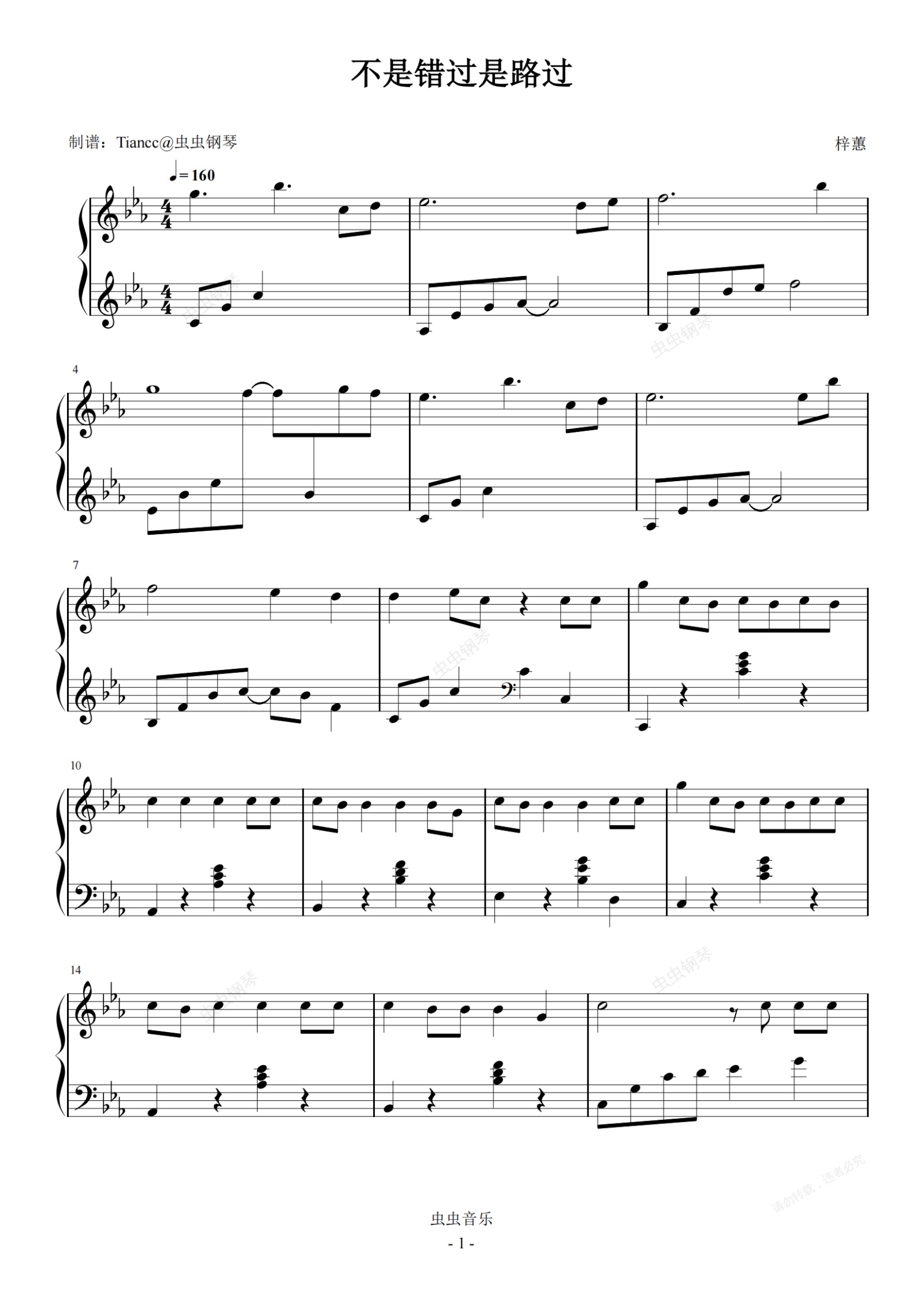 钢琴谱:《不是错过是路过》梓蕙,清新小曲