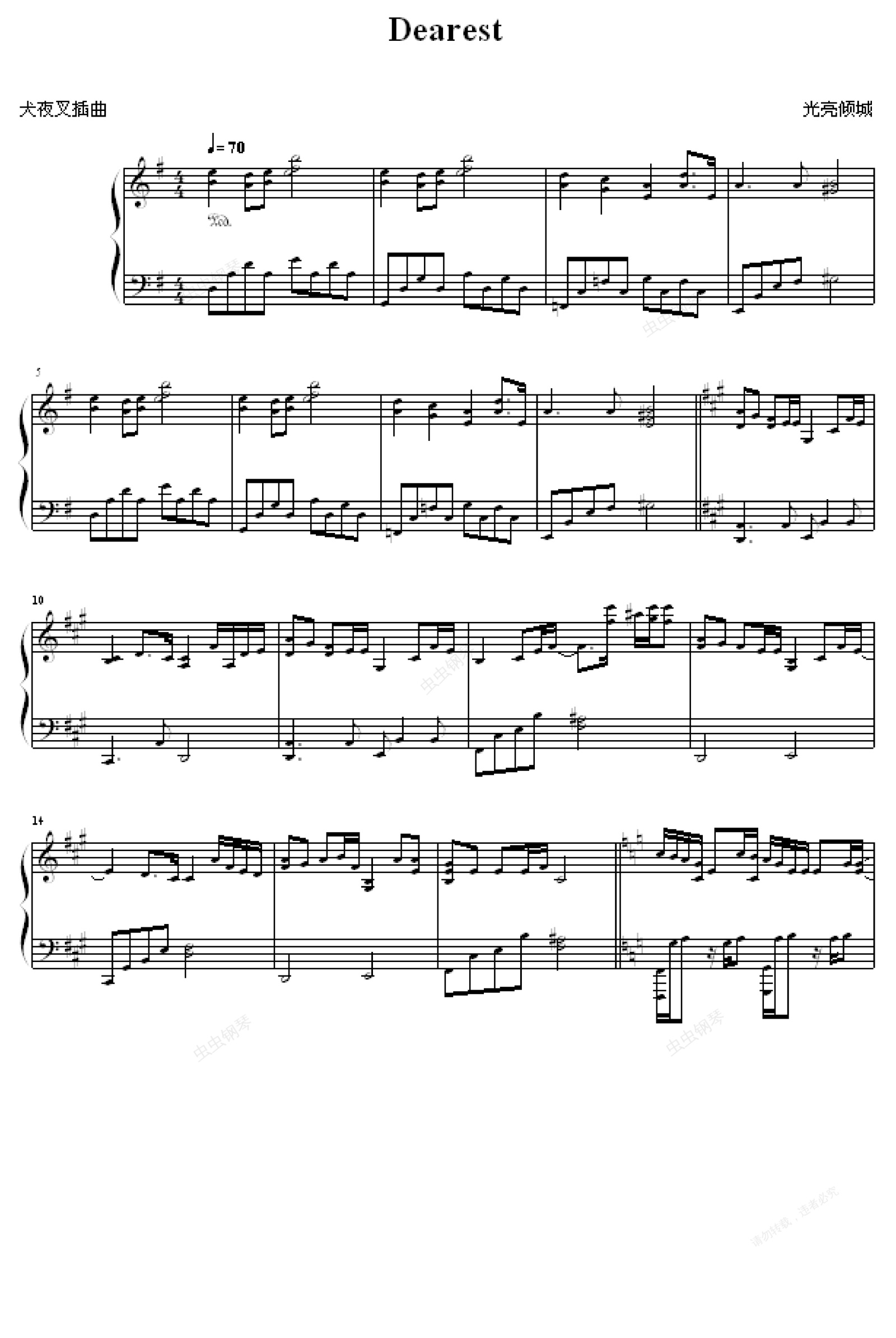 钢琴谱:Dearest