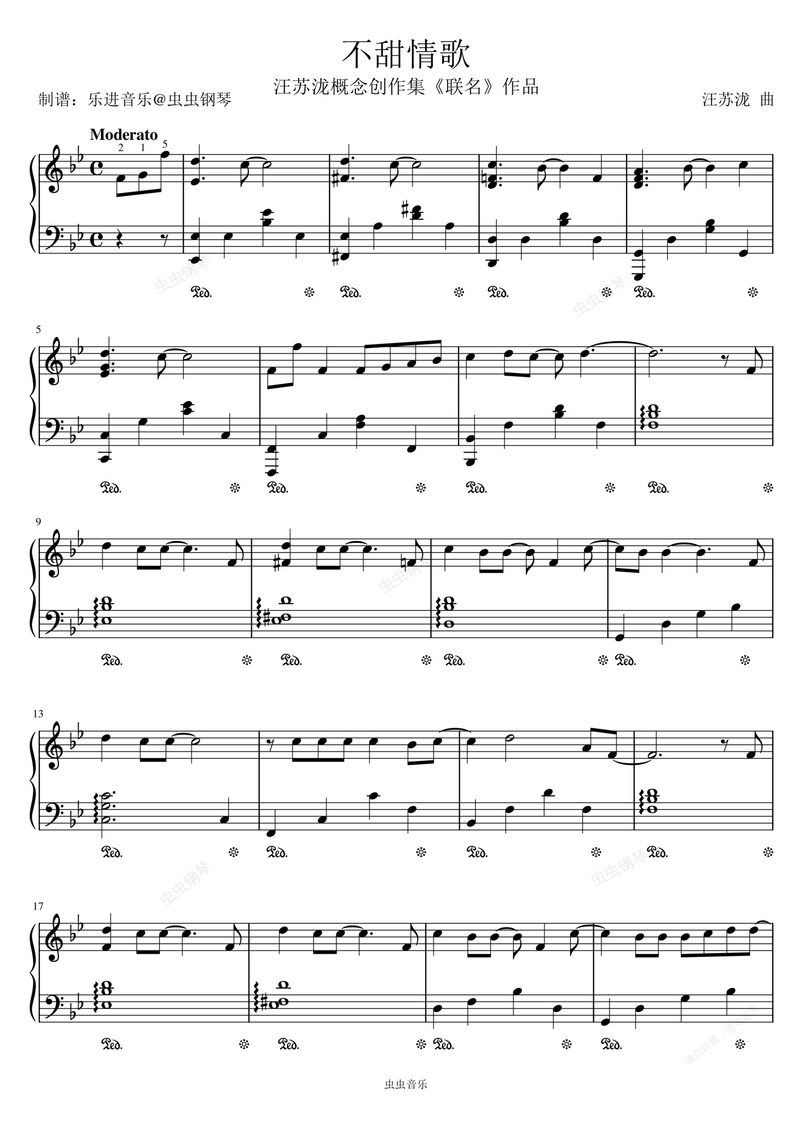 钢琴谱:《不甜情歌》 (汪苏泷概念创作集 联名作品)