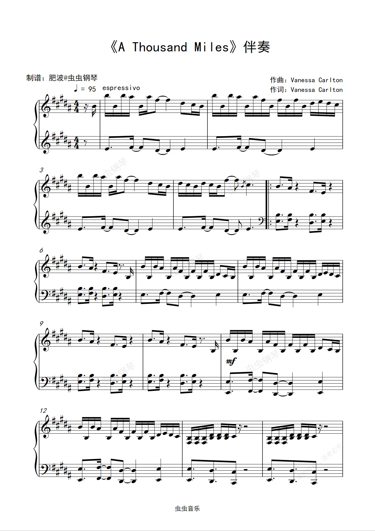 钢琴谱:《A Thousand Miles》完美弹唱曲谱