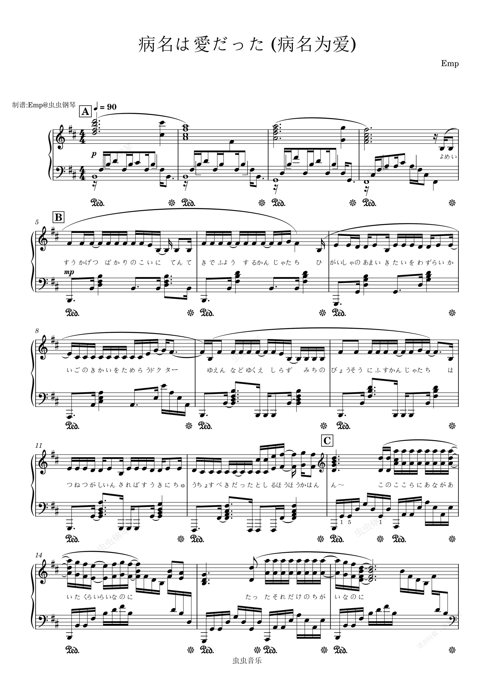 钢琴谱:病名は愛だった (病名为爱) 钢琴改编