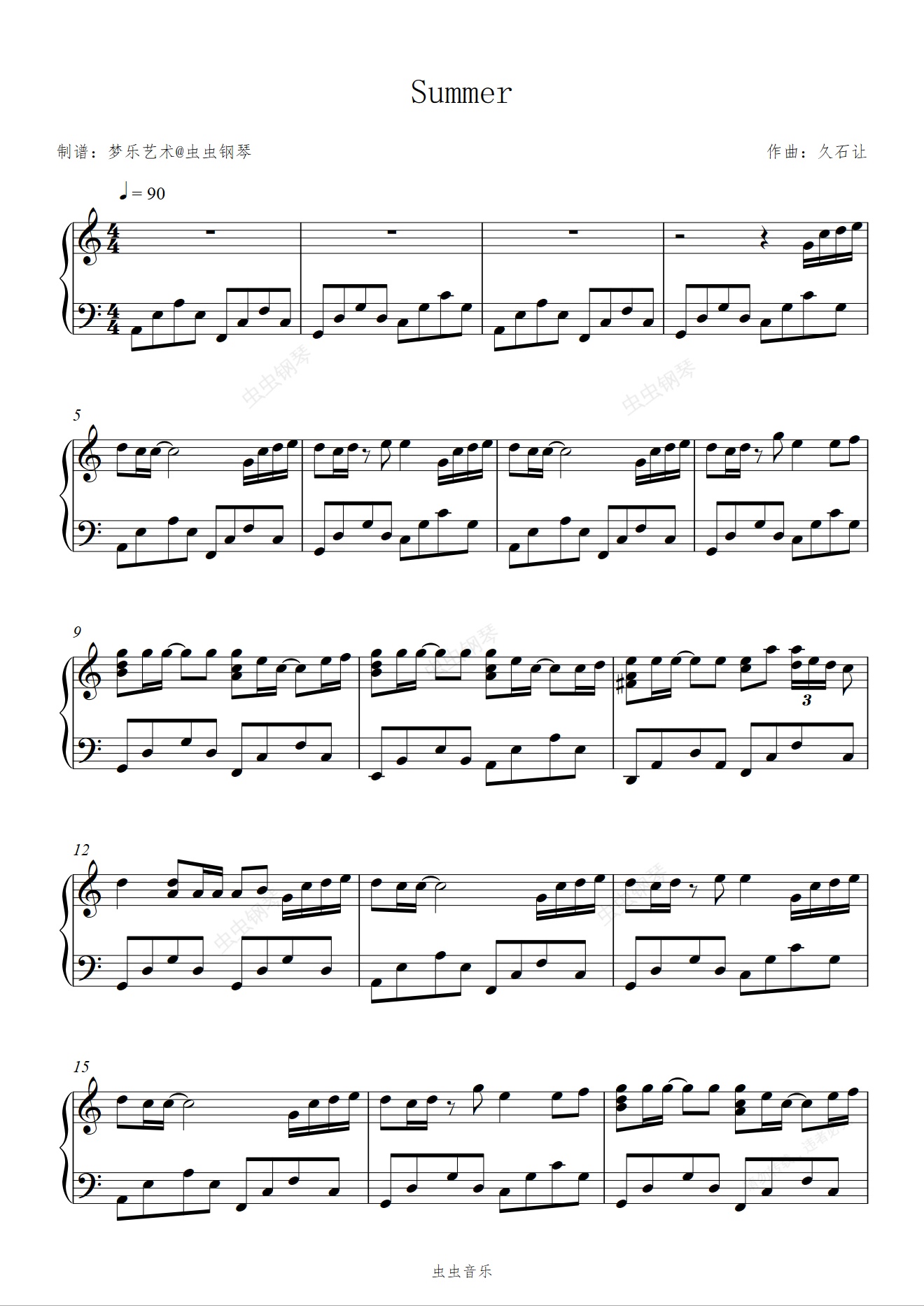 钢琴谱:Summer(菊次郎的夏天) C调 好听易弹