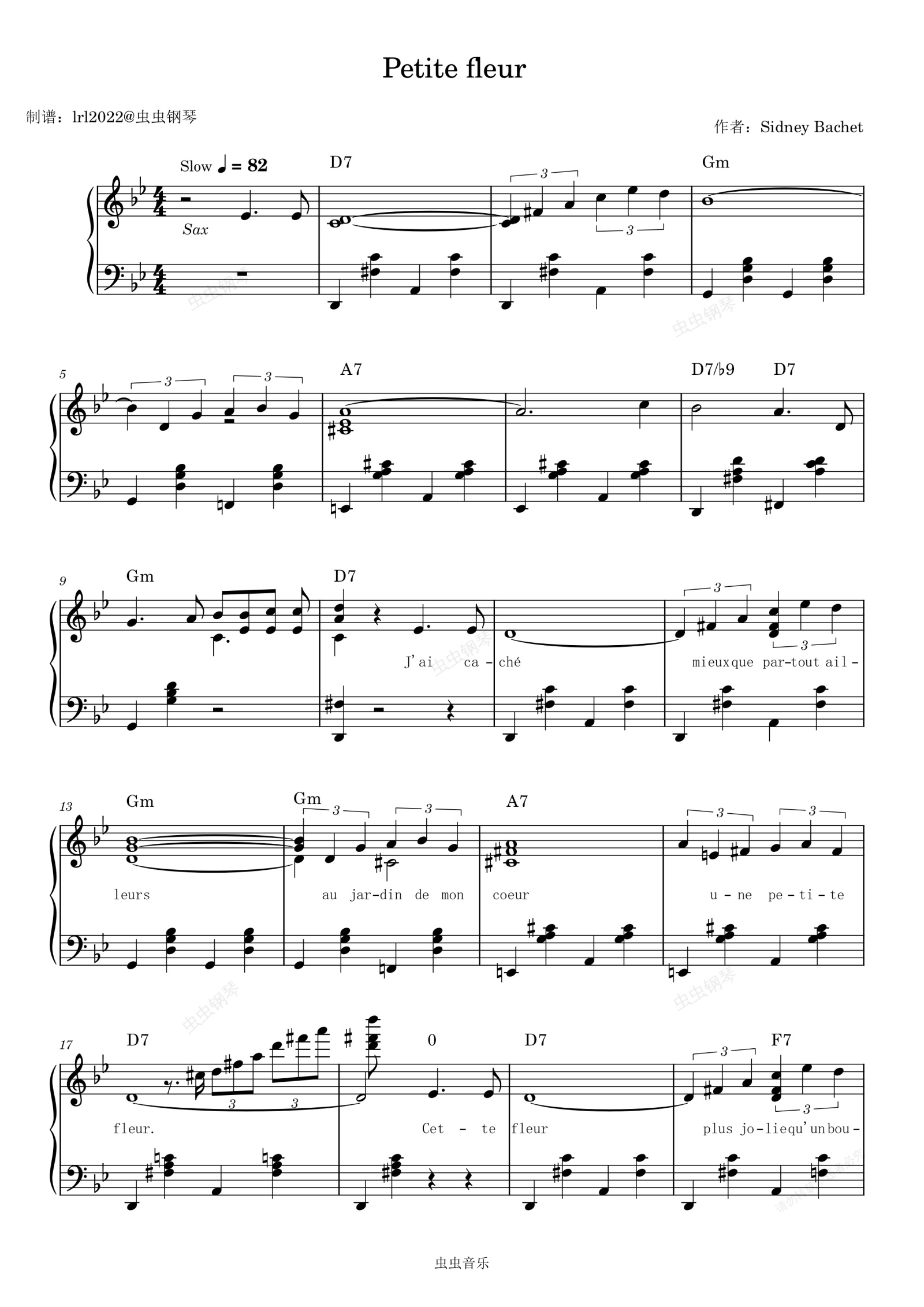 钢琴谱:Petite Fleur - Sidney Bachet - 钢琴独奏