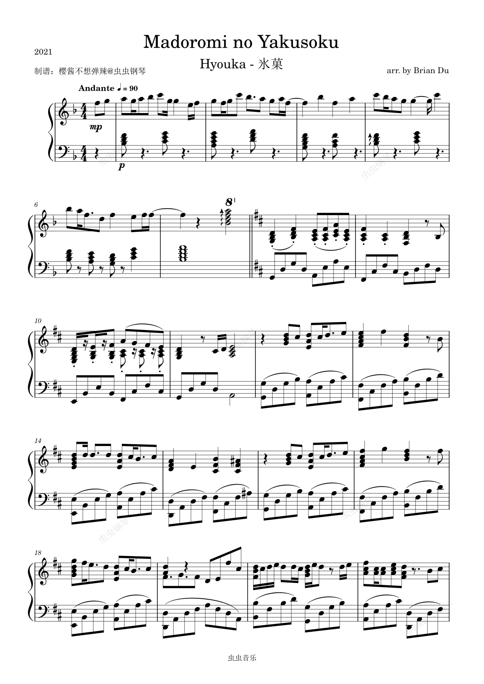 钢琴谱:まどろみの約束(TV动画《冰菓》ED1)-佐藤聡美/芽野愛衣