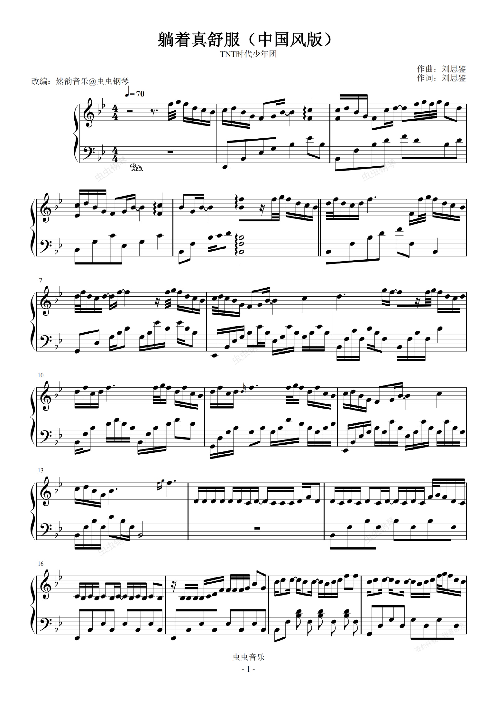钢琴谱:中国风改编 | 躺着真舒服-TNT时代少年团