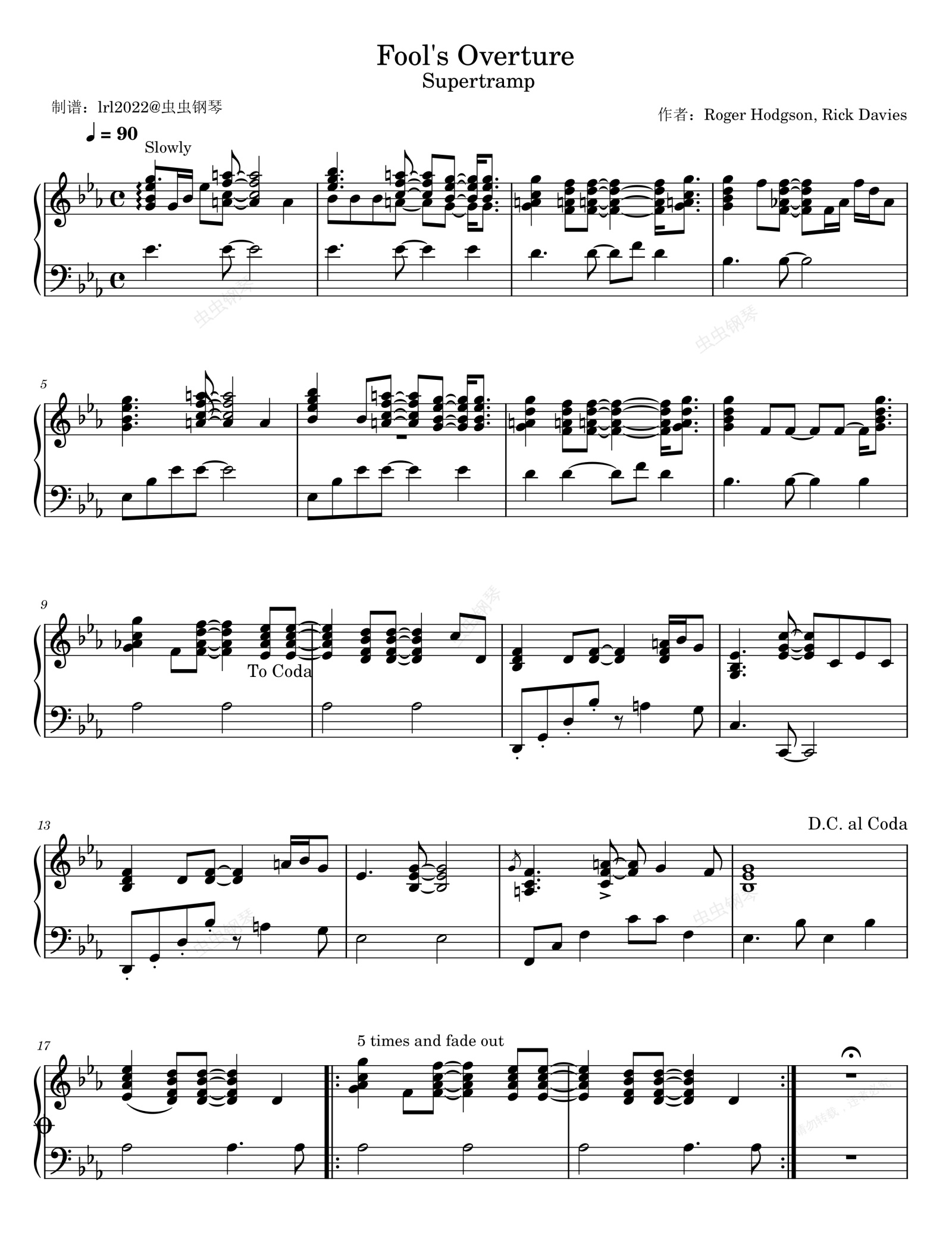 钢琴谱:Fool's Overture - Supertramp - 声乐加钢琴伴奏弹唱 含歌词