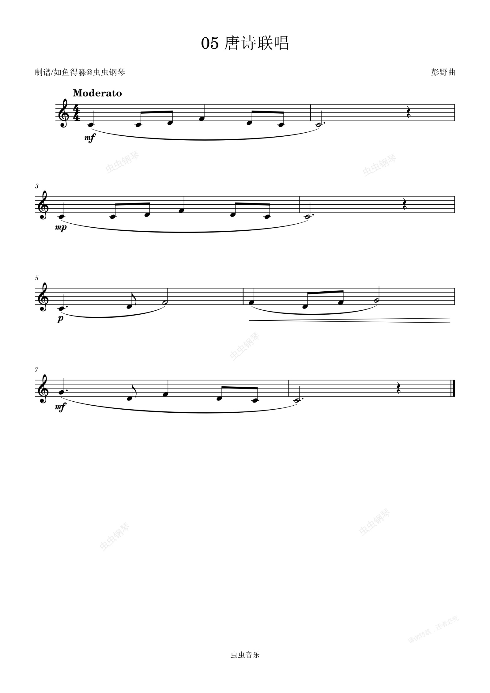 钢琴谱:视唱练耳考试曲5-唐诗联唱