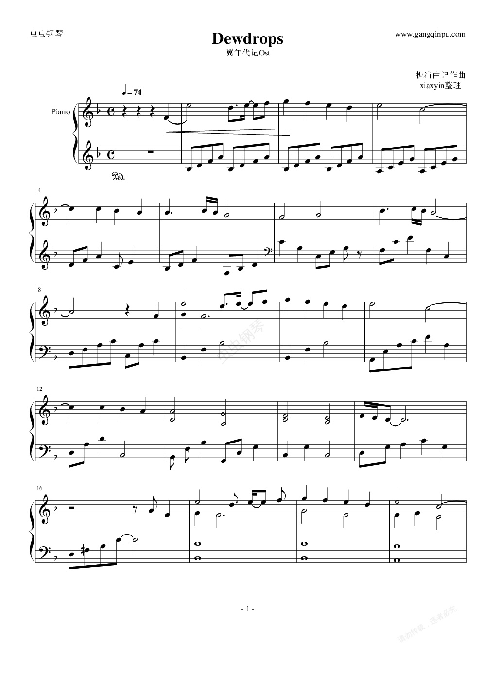 钢琴谱:翼年代记 - Dewdrops