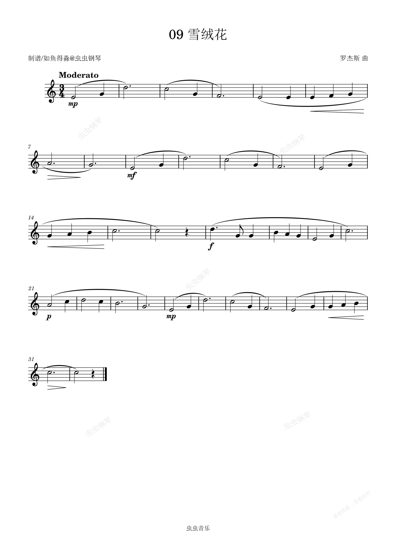 钢琴谱:视唱练耳考试曲9-雪绒花