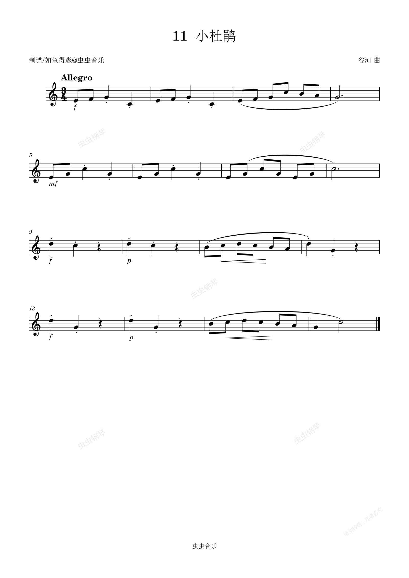 钢琴谱:视唱练耳考试曲11-小杜鹃