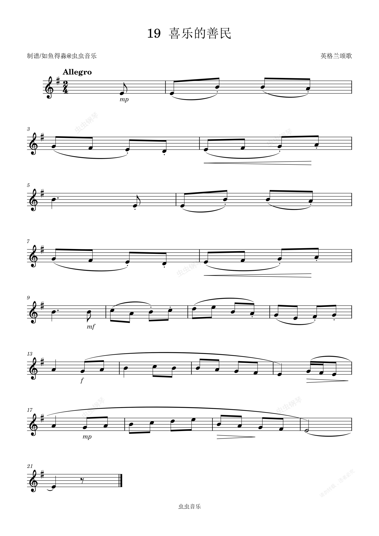 钢琴谱:视唱练耳考试曲19-喜乐的善民